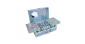 Este estojo inclui: 20 brilhos labiais, 20 sombras em creme, 2 esmaltes, 2 protetores labiais, 2 anéis, 2 grampos de cabelo, separadores de dedos, pincel para brilho labial, pincel para sombras, caixa de armazenamento com espelho.