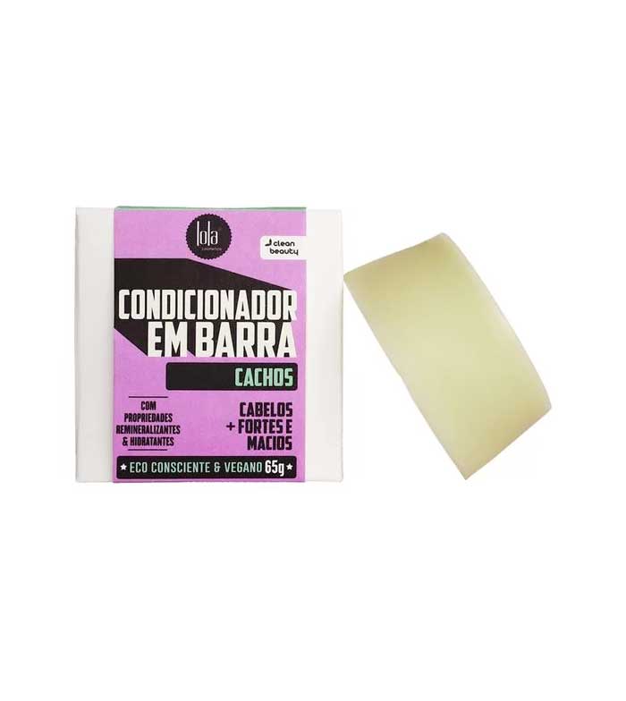 Condicionador sólido para cabelos cacheados da Lola Cosmetics que ajuda a fortalecer e amaciar os cabelos.