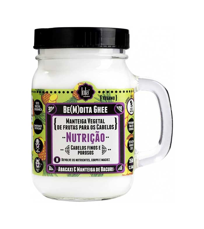 Máscara nutritiva de abacaxi e bacuri Be(m)dita Ghee especialmente indicada para cabelos finos e porosos.