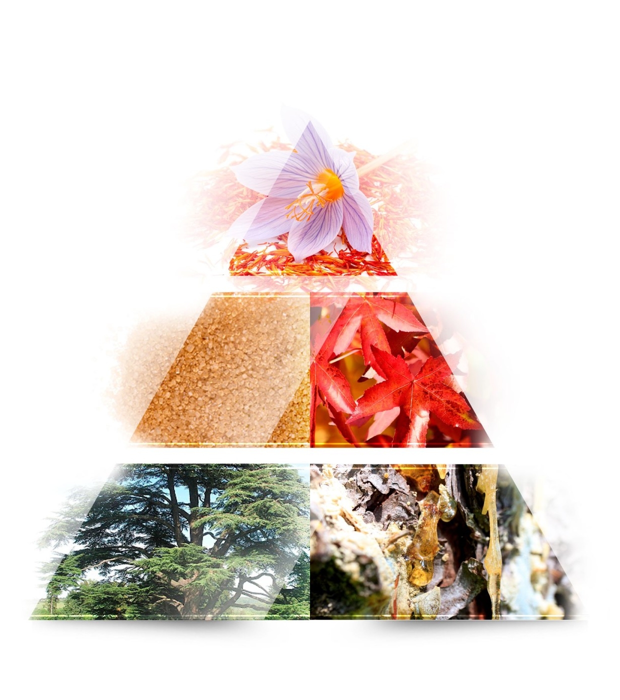 Sua abertura combina a riqueza do açafrão com jasmim, amêndoa e um toque cítrico de laranja, criando um início brilhante e refinado.