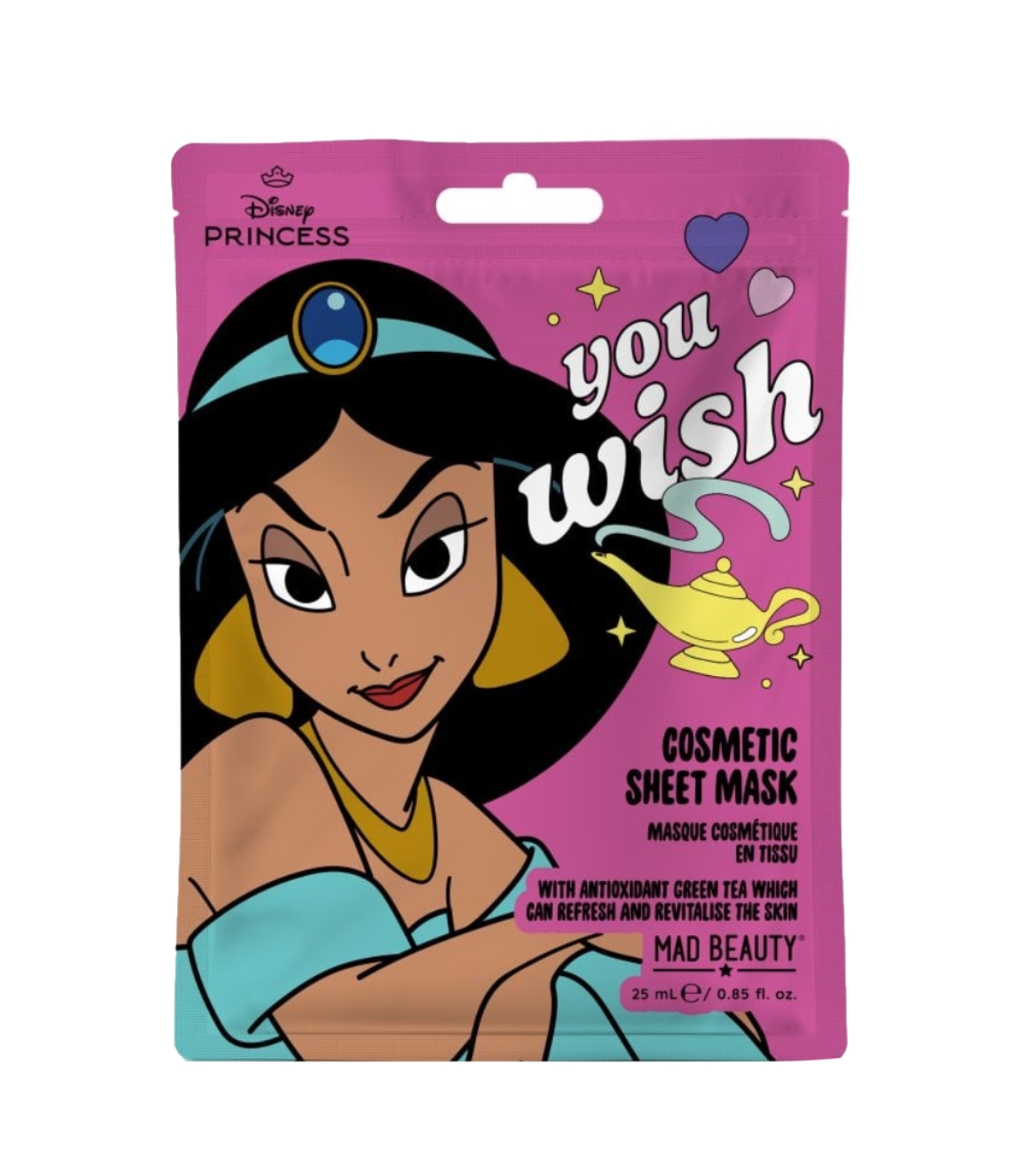 Descubra um mundo de beleza para sua pele com esta máscara facial estampada da Mad Beauty com a Princesa Jasmine da Disney.