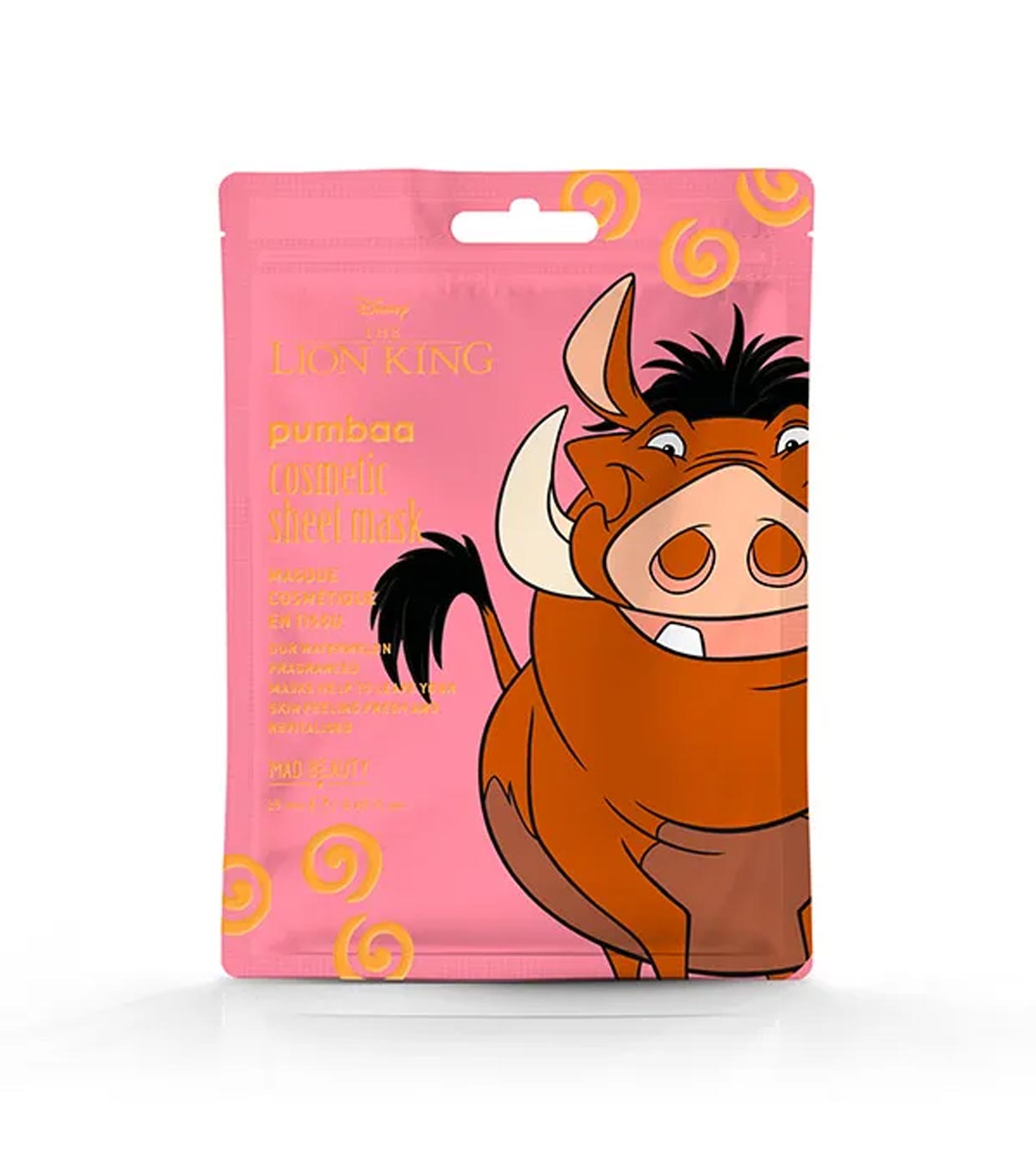 Máscara facial Pumbaa com extrato de melancia da coleção The Lion King da Mad Beauty.