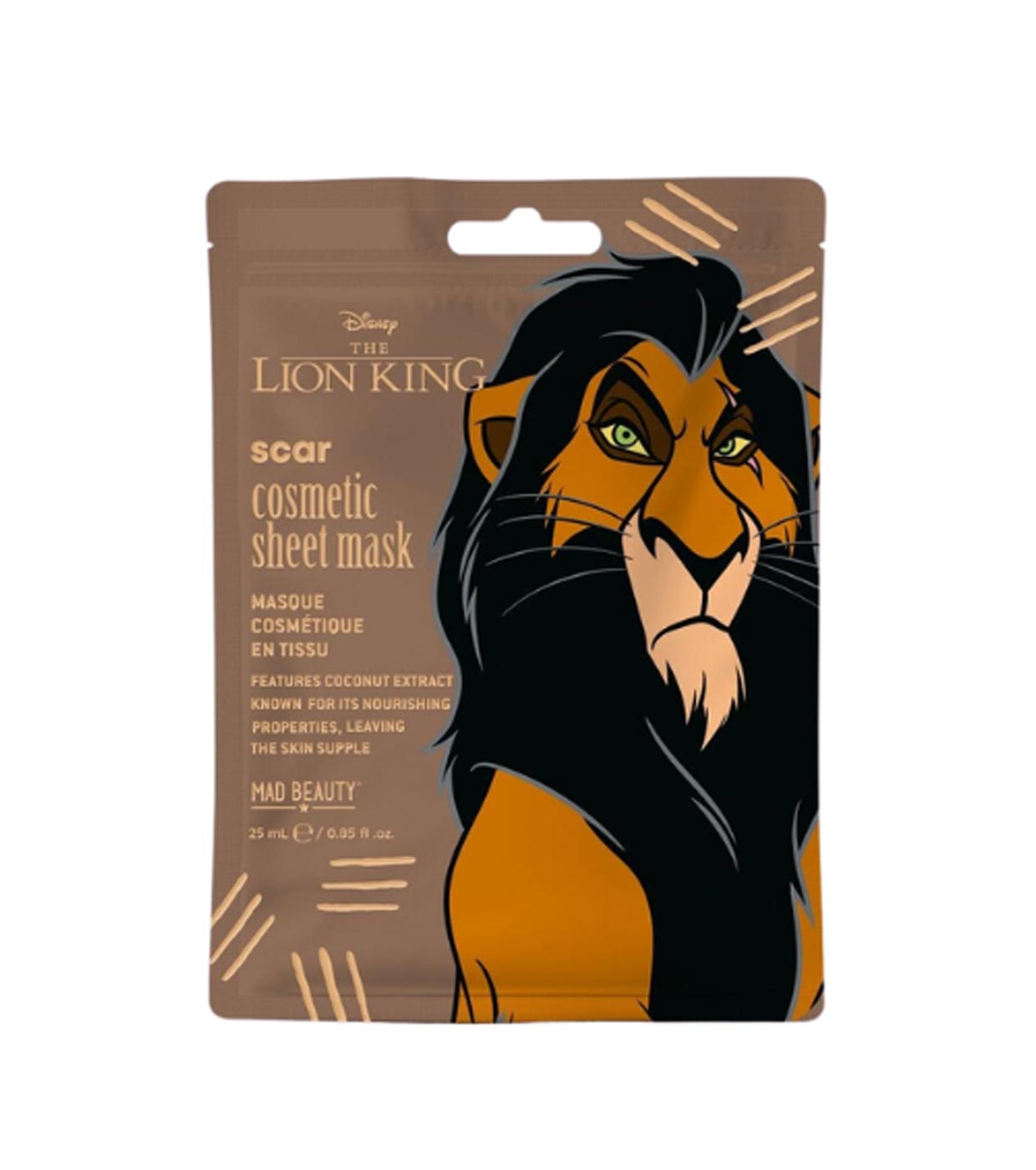Máscara facial Scar com extrato de coco da coleção The Lion King da Mad Beauty.
