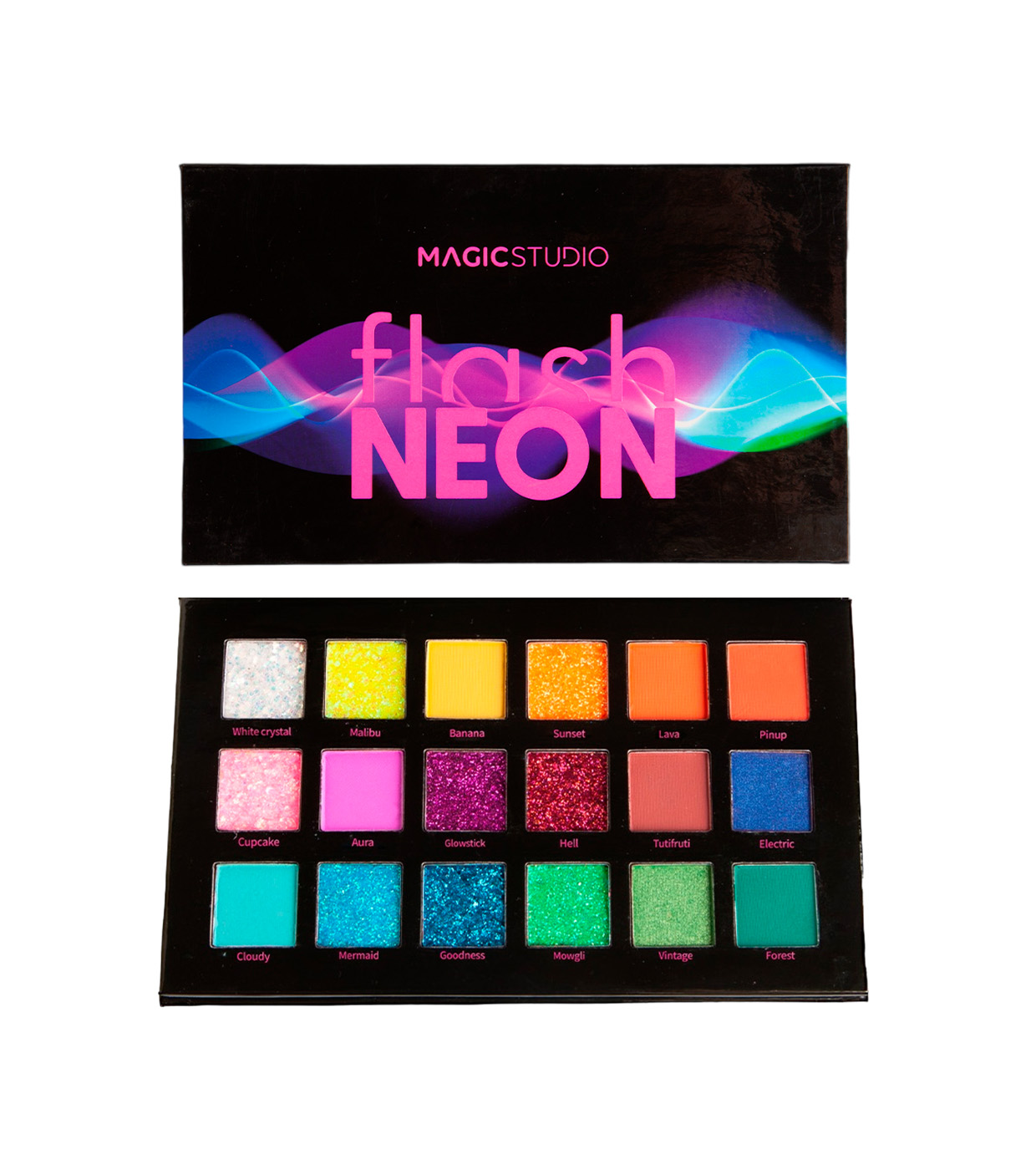 Paleta de sombras Magic Studio Flash Neon de 18 , ideal para criar looks fantásticos.