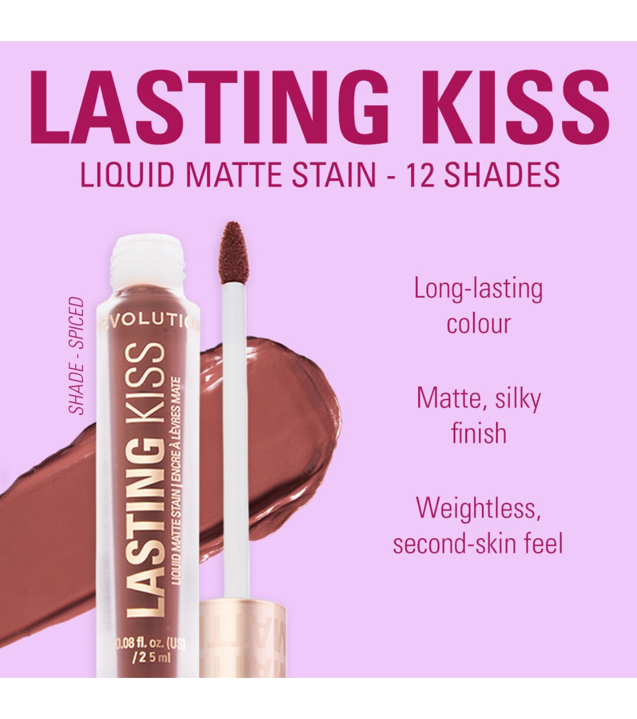 Descubra o batom líquido matte Lasting Kiss da Revolution , que combina cor intensa e conforto em uma fórmula leve com efeito de segunda pele.