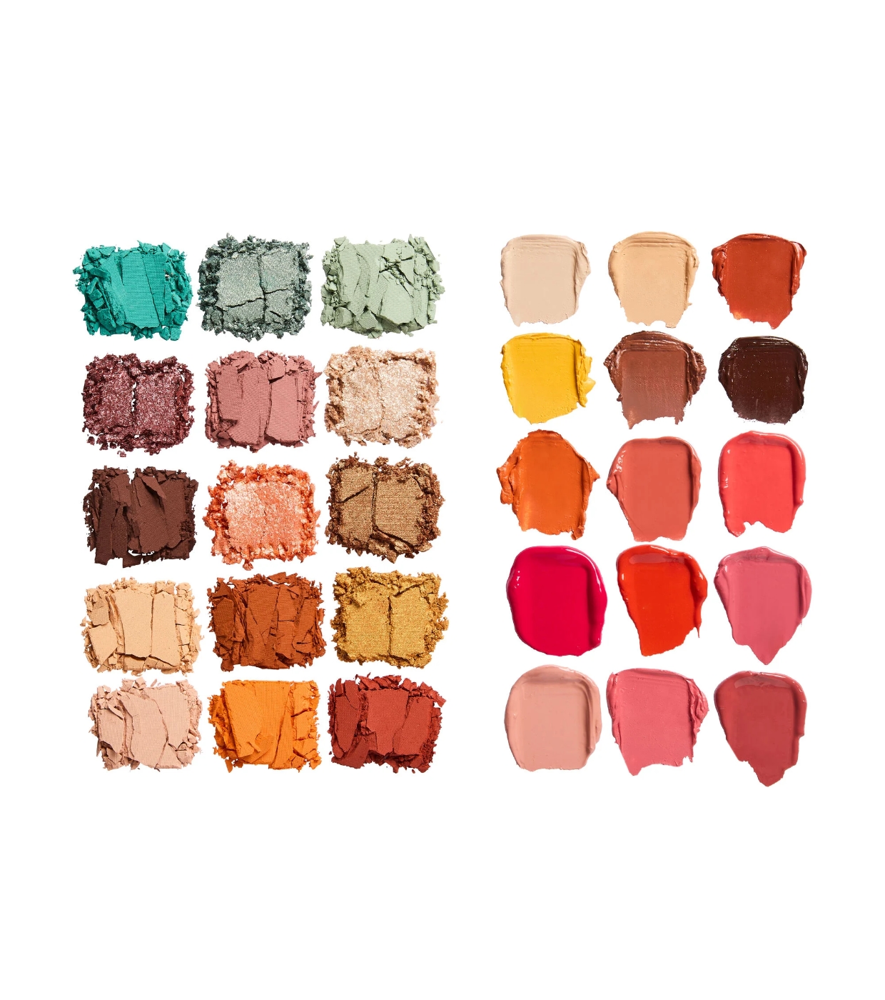 Uma paleta essencial, tudo-em-um, para criar looks de maquiagem completos com um acabamento radiante, quente e luminoso.