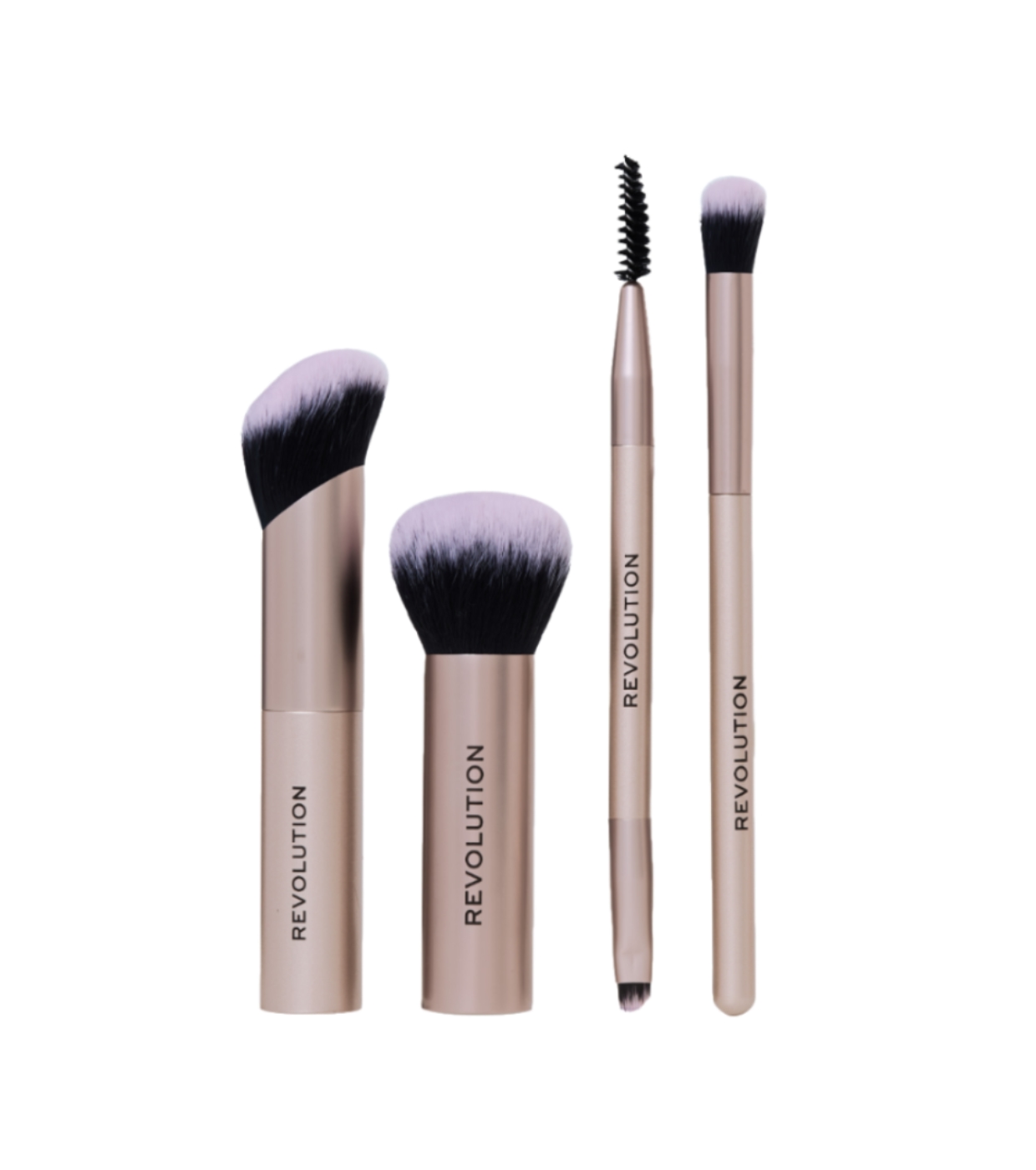 É hora de brilhar por onde você for! O conjunto de pincéis On the Glow da Revolution é o seu parceiro perfeito para criar uma base impecável para qualquer ocasião.
