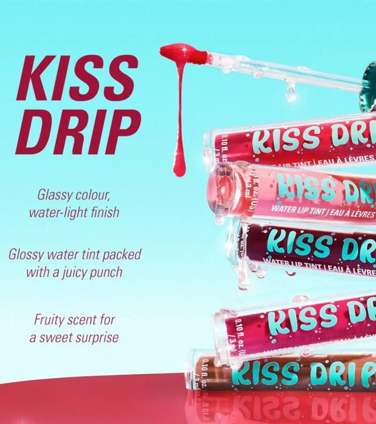Seus lábios, mas com mais brilho. O Kiss Drip Water Lip Tint da Revolution proporciona uma leve e construível cor com um acabamento brilhante e efeito aquoso, como um brilho fresco da manhã… só que nos seus lábios.