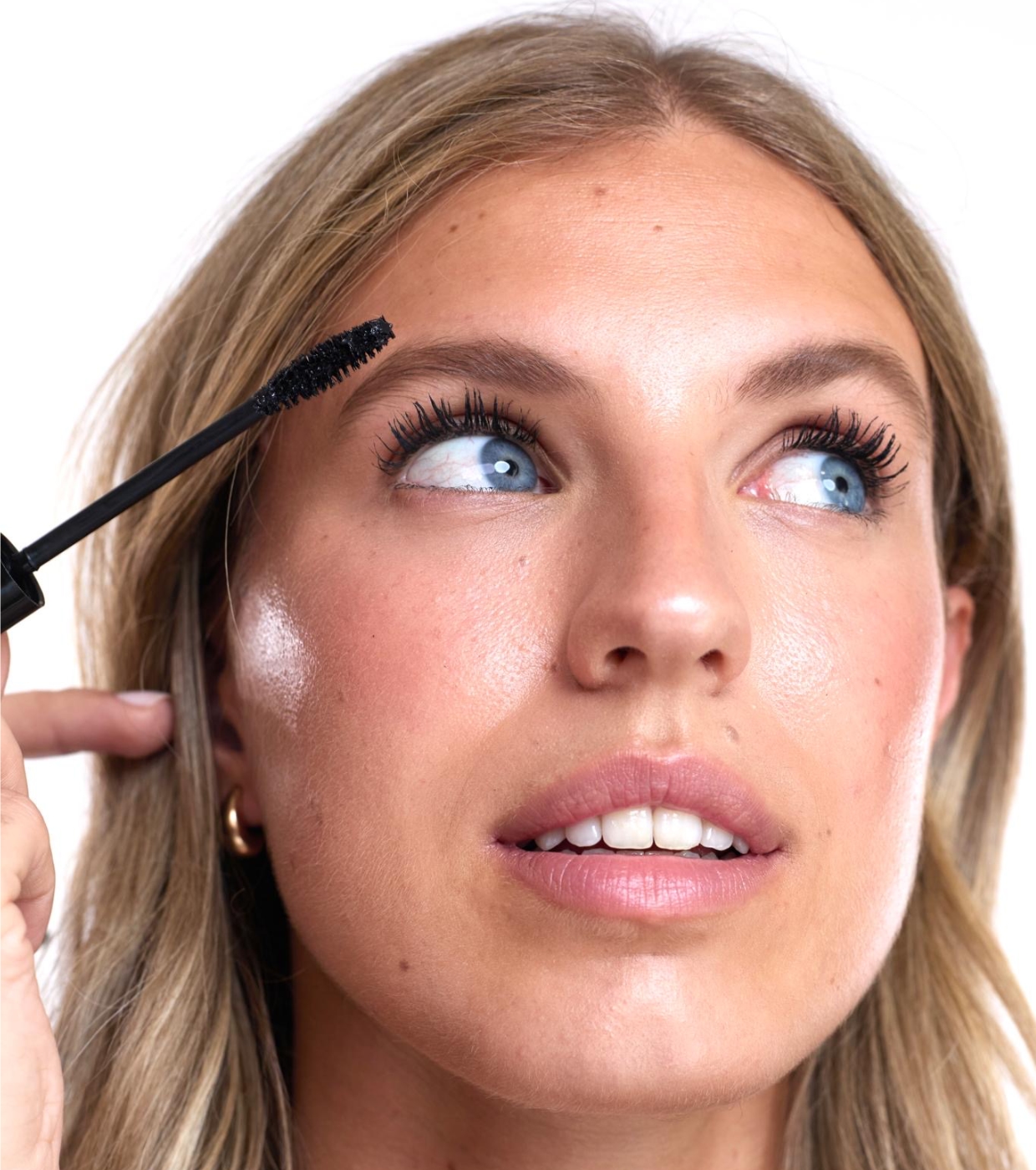 Com a escovinha na base dos cílios, faça pequenos movimentos em zigue-zague para que as fibras se prendam bem aos cílios, enquanto a desliza até as pontas.