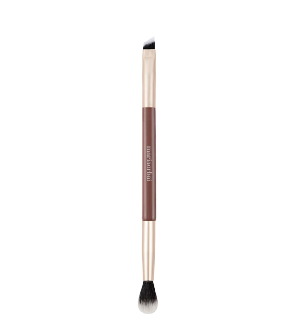 Este pincel duplo multifuncional Soft Vegan Brush Brownie MO. 04 Maria Orbai combina dois pincéis profissionais em uma única ferramenta, oferecendo precisão e versatilidade para maquiagem dos olhos.