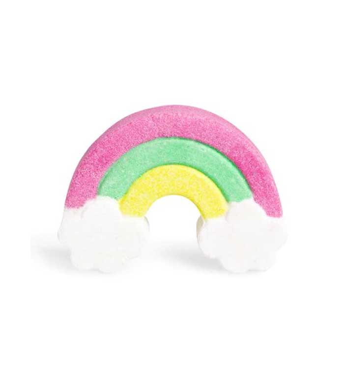 Uma bomba de banho em forma de arco-íris, para um banho de cor e diversão.