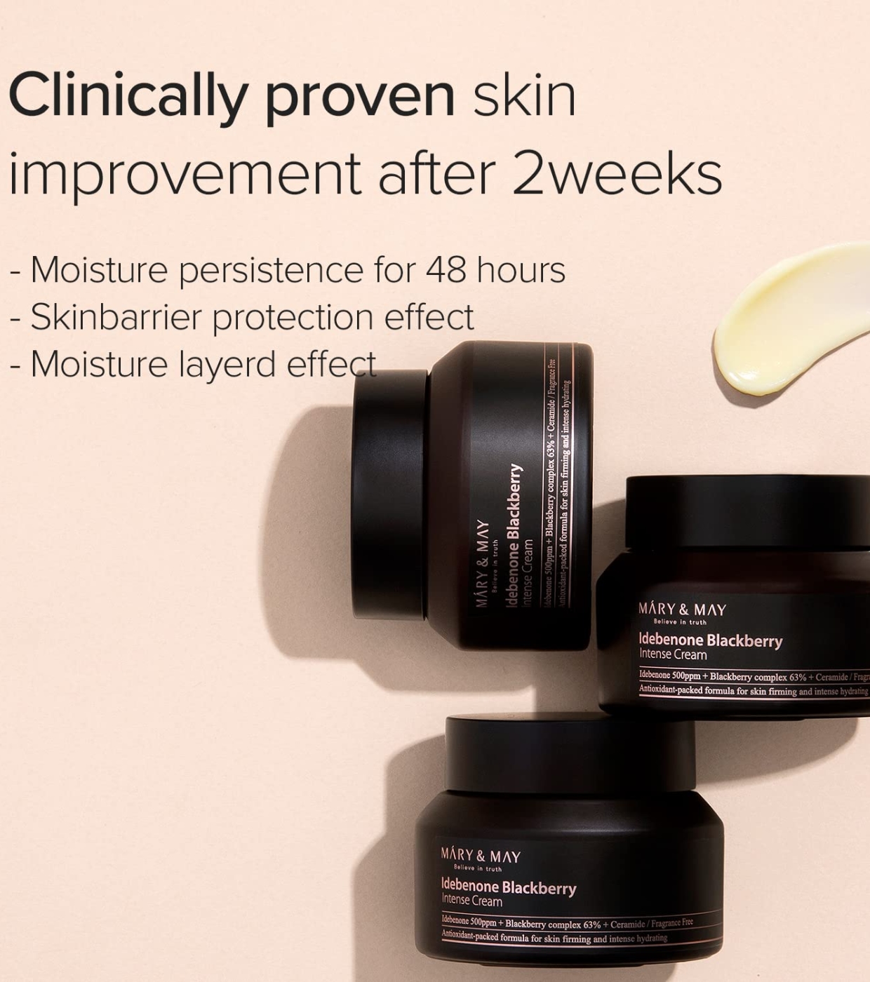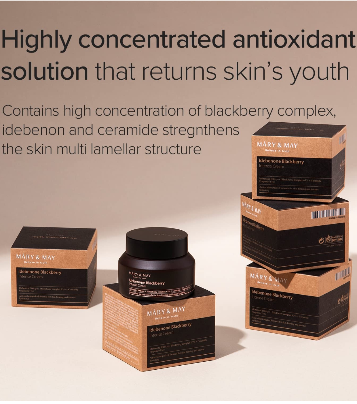 O Idebenone Blackberry Intense Cream da Mary & May é perfeito para quem procura um creme antioxidante antienvelhecimento que ofereça hidratação profunda, proteção e um efeito rejuvenescedor visível.