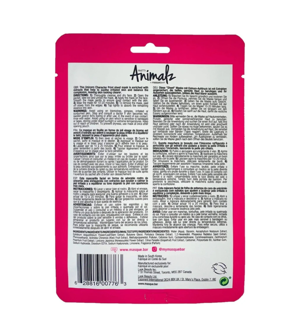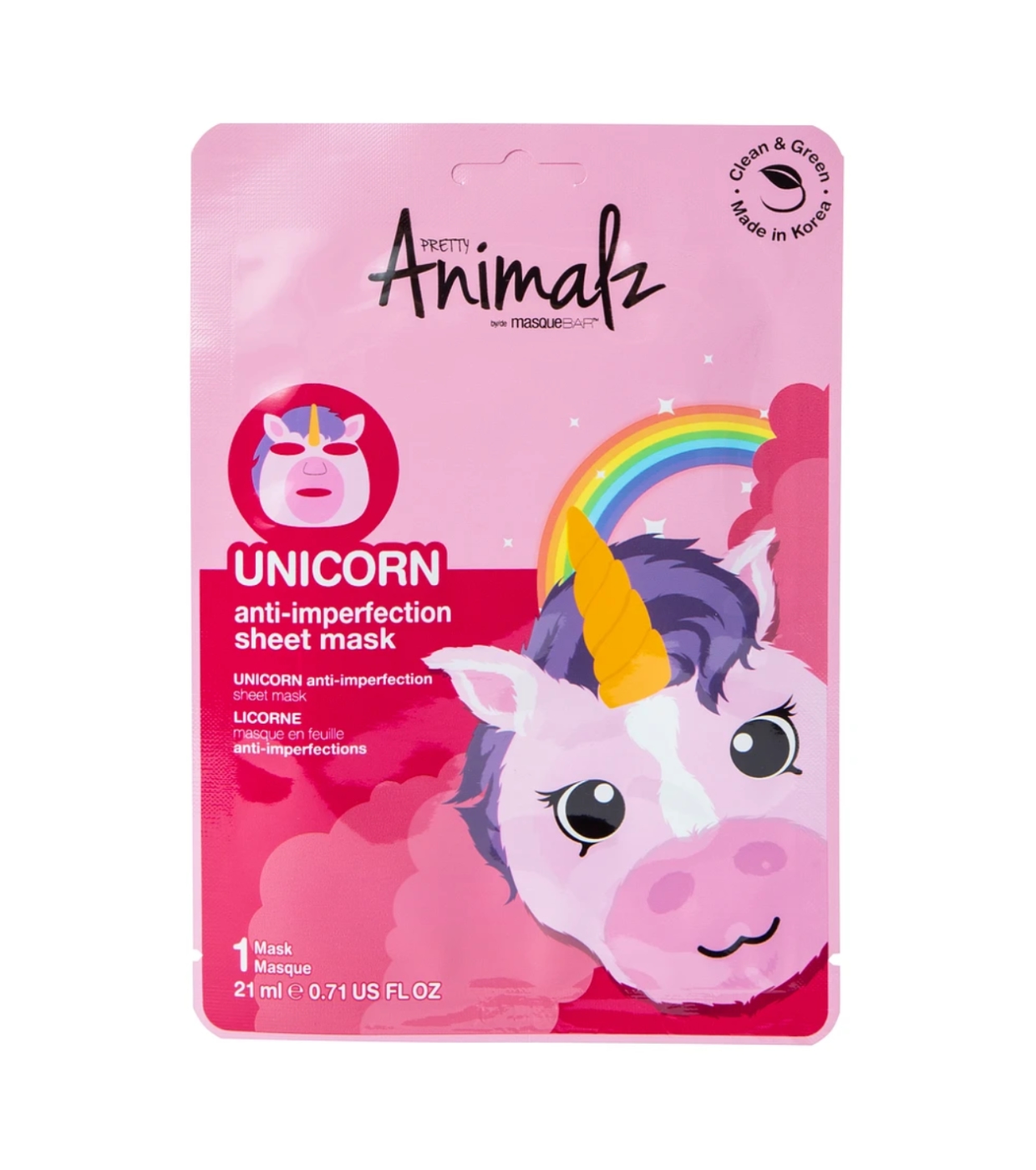 Transforme a sua rotina de cuidados faciais numa experiência mágica com a máscara facial Pretty Animalz Unicornio da masque BAR , concebida para combater imperfeições e proporcionar luminosidade.