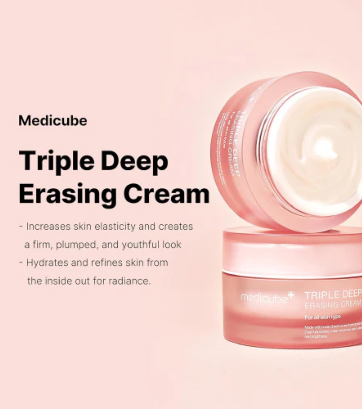 O creme antienvelhecimento Triple Collagen 4.0 da Medicube é um creme antienvelhecimento avançado desenvolvido para combater os sinais visíveis de envelhecimento e promover uma pele mais firme, brilhante e hidratada.