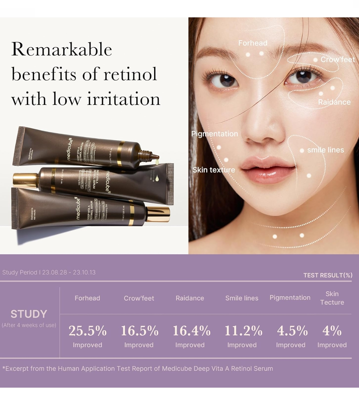 Rejuvenesça sua pele com o Medicube Retinol e Vitamina C Medicube Serum , um sérum intensivo formulado com retinol (vitamina A), um dos ingredientes mais eficazes para combater os sinais de envelhecimento.