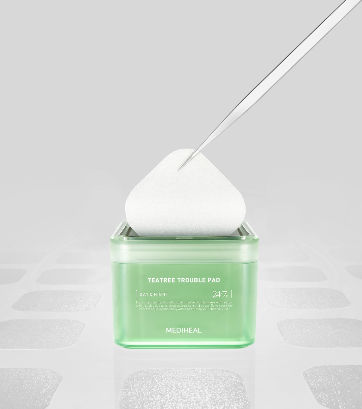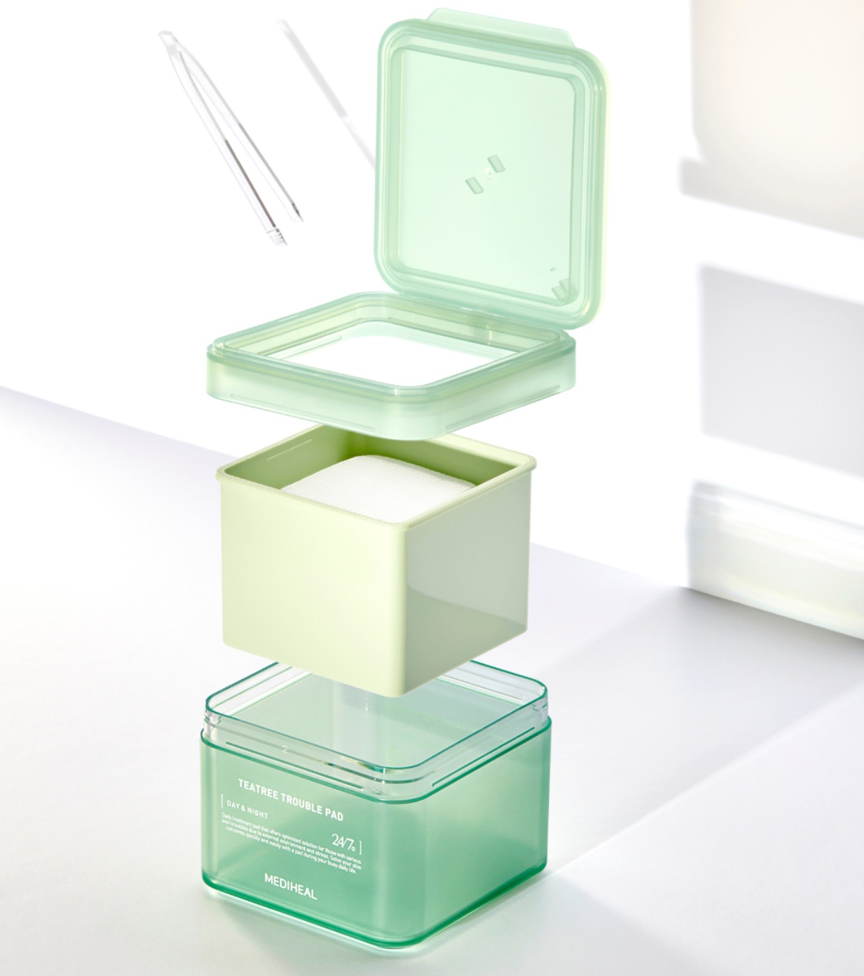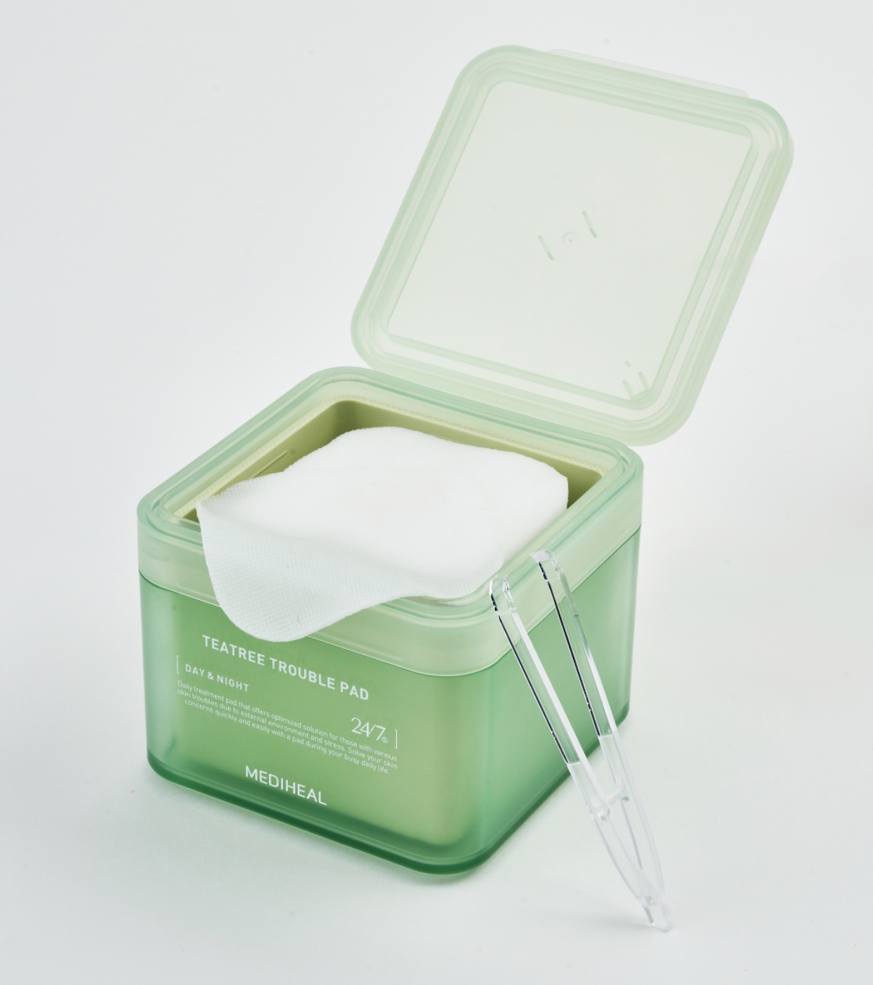 Descubra o poder de um tratamento suave mas concentrado com o toner facial com extrato de tea tree em formato 'pads' da Mediheal , especialmente formulado para acalmar e acalmar a pele irritada.