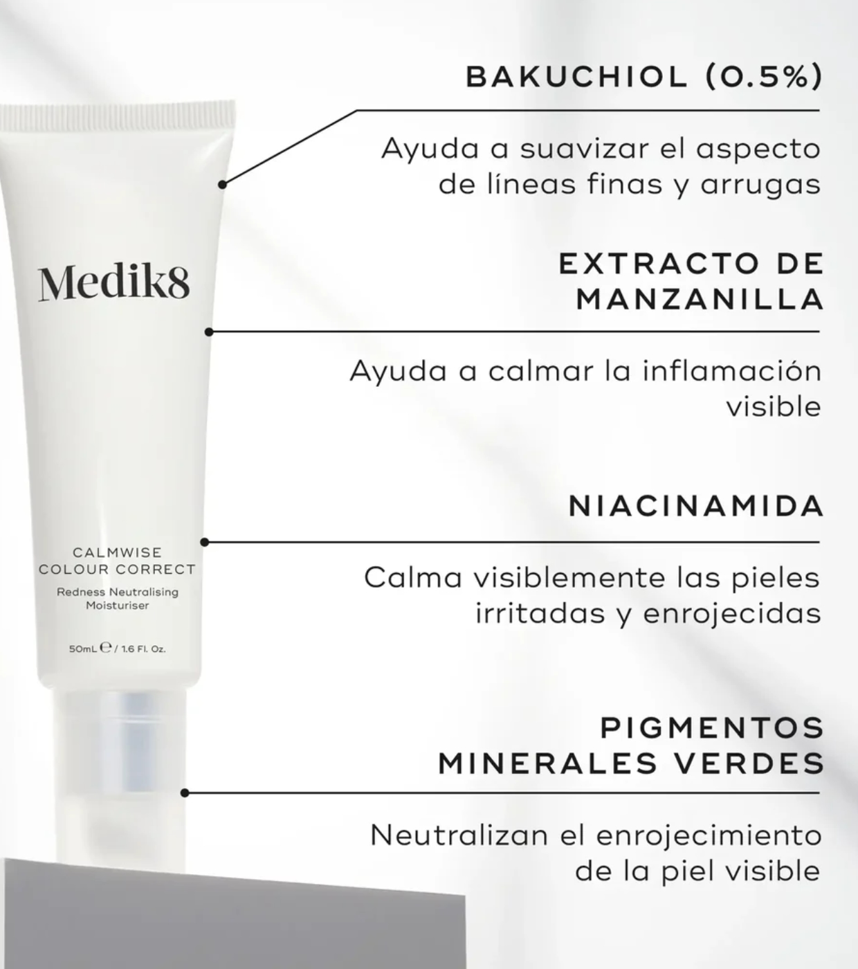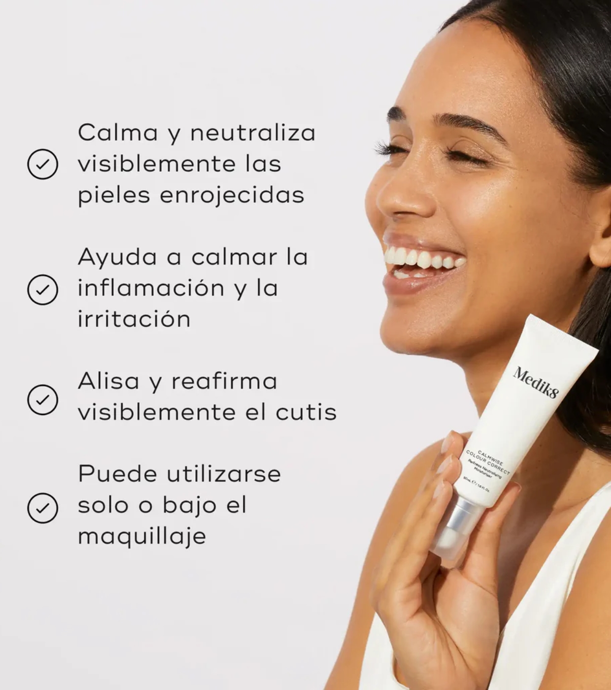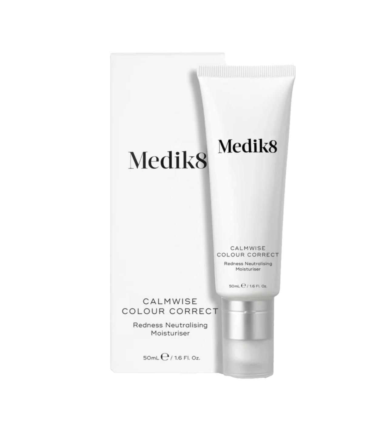 Redness Neutralizing Cream Calmwise Colour Correct da Medik8 é um creme hidratante especialmente formulado para peles com rosácea, sensibilidade ou tendência a vermelhidão.