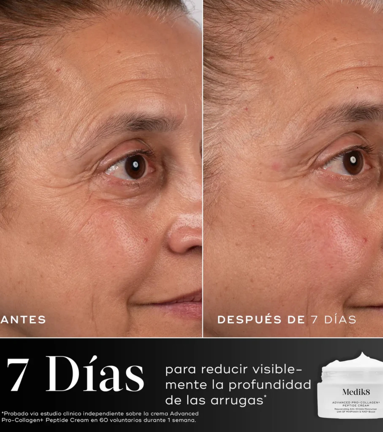 - Redução profunda de rugas: Melhora a aparência das rugas desde o primeiro uso e reduz sua profundidade em 7 dias.2
