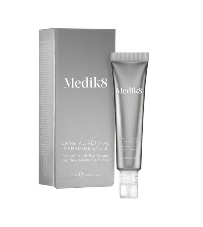 Minimize a aparência de rugas e pés de galinha com a ajuda de Medik8 Crystal Retinal Ceramide Eye 3 , um tratamento noturno para os olhos que trabalha visivelmente para levantar, suavizar e iluminar o contorno dos olhos.