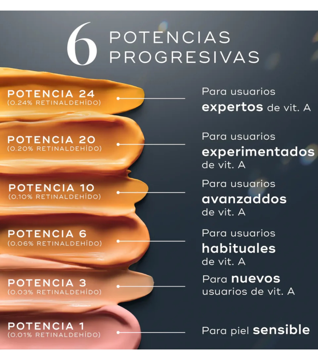 Contém 0,24% de retinaldeído encapsulado, um retinóide de nova geração que atua até 11 vezes mais rápido que o retinol tradicional, proporcionando uma pele mais lisa, brilhante e firme.