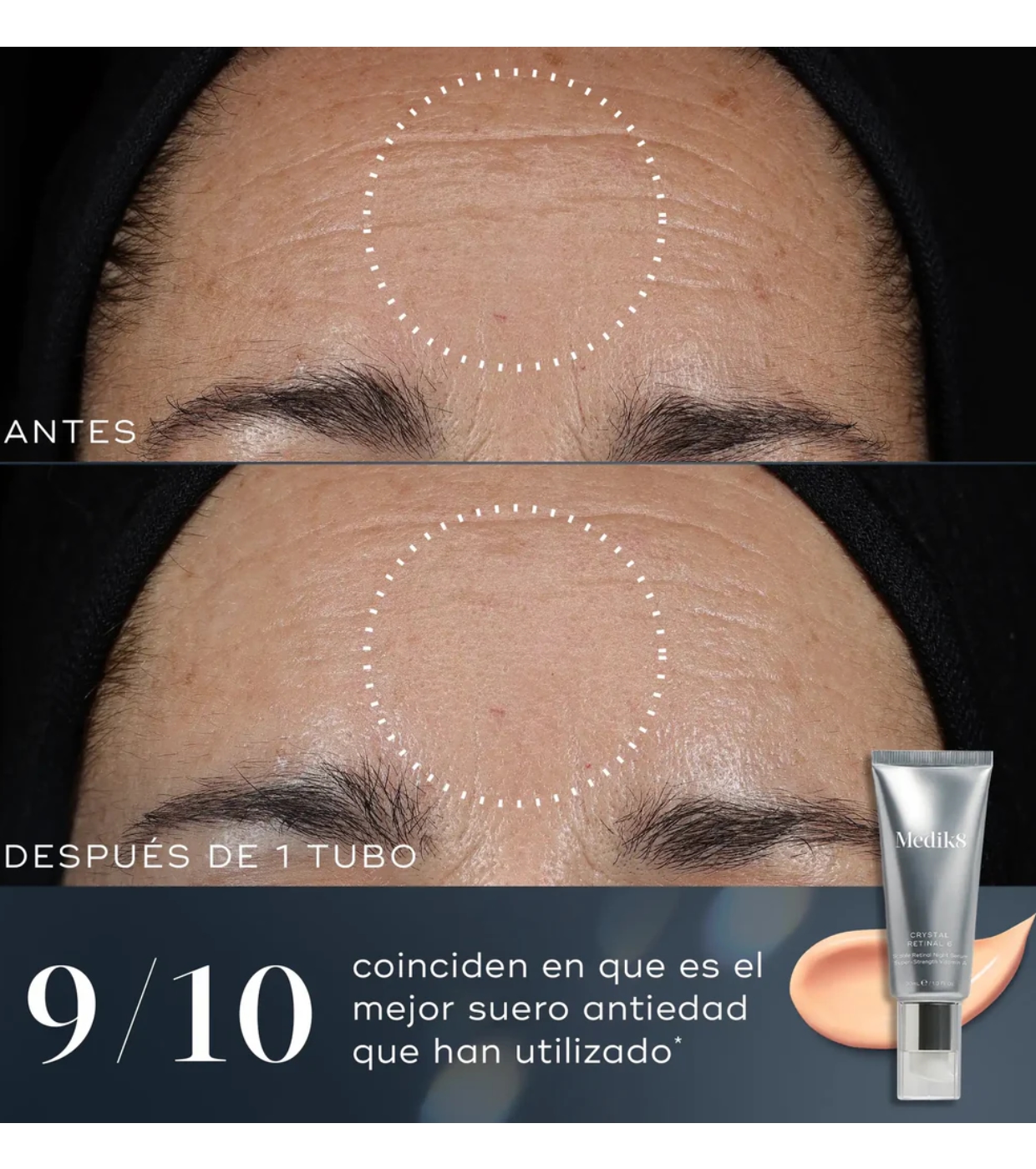 Além disso, Medik8 oferece uma gama de concentrações progressivas de Crystal Retinal, permitindo aos utilizadores adaptar o tratamento às necessidades da sua pele e avançar gradualmente na sua rotina de cuidados com a pele.