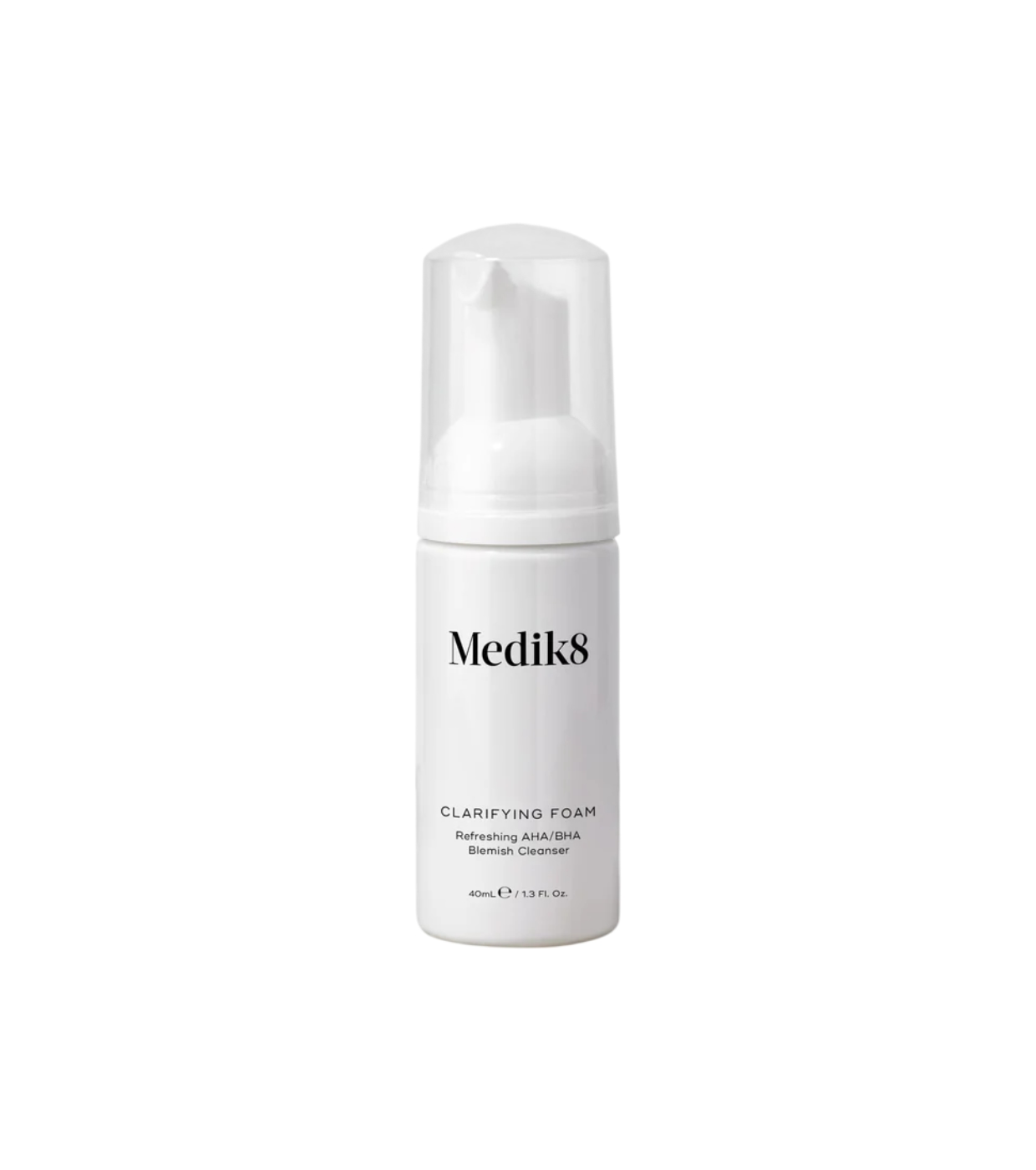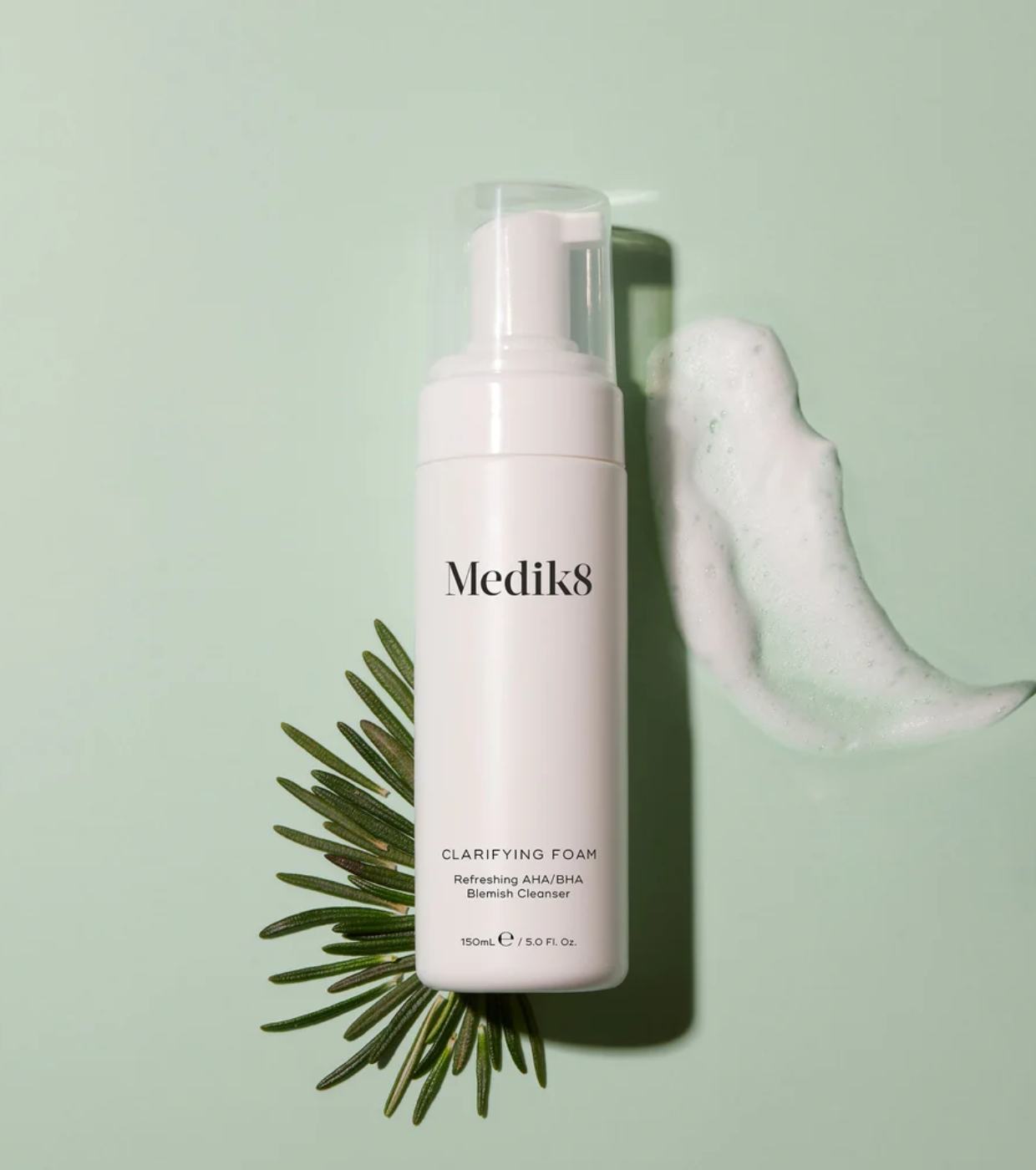 Obtenha uma limpeza facial perfeita para a pele manchada com esta espuma de limpeza com AHA/BHA Clarifying Foam da Medik8 .