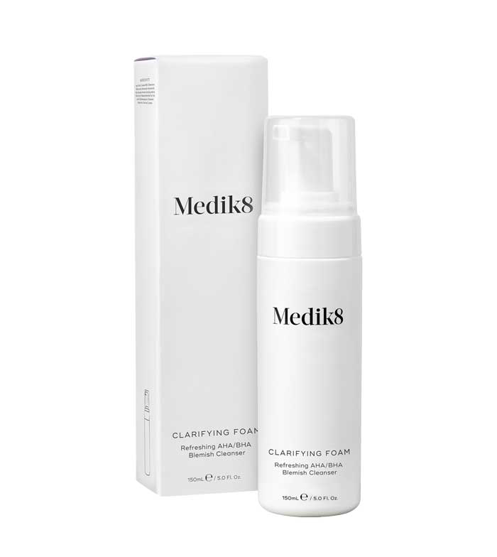 Obtenha uma limpeza facial perfeita para a pele manchada com esta espuma de limpeza com AHA/BHA Clarifying Foam da Medik8 .