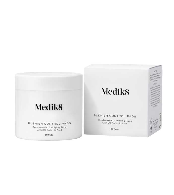O tratamento de manchas Blemish Control Pads da Medik8 sem álcool é o mais eficaz no tratamento de surtos de espinhas, proporcionando suavidade à pele.