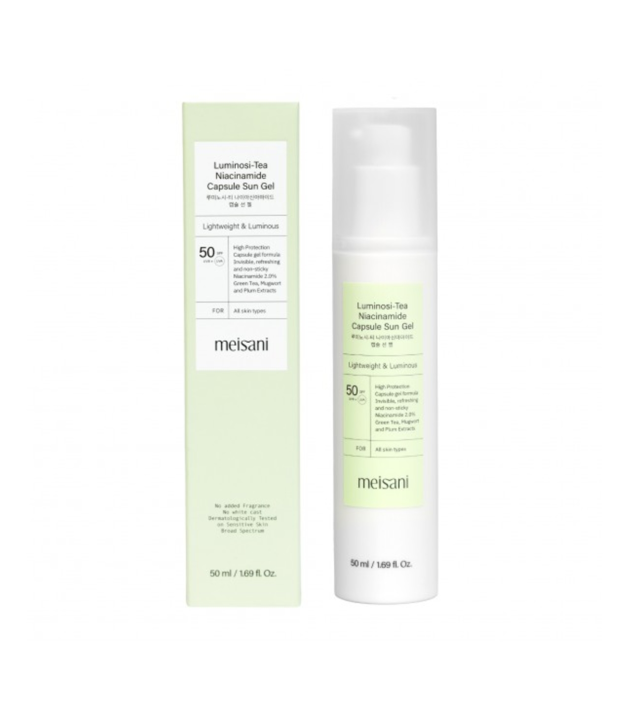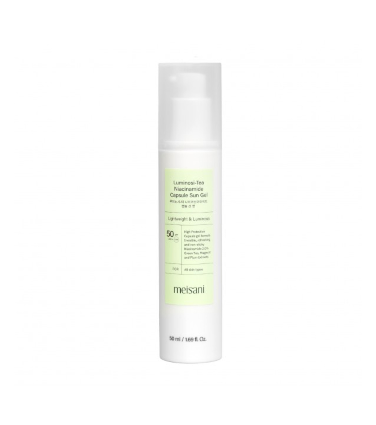 Luminosi-Tea Niacinamide Capsule Sun Gel FPS 50 é um protetor solar em gel ultraleve que oferece alta proteção de amplo espectro (UVA/UVB) e um acabamento luminoso, hidratante e confortável.