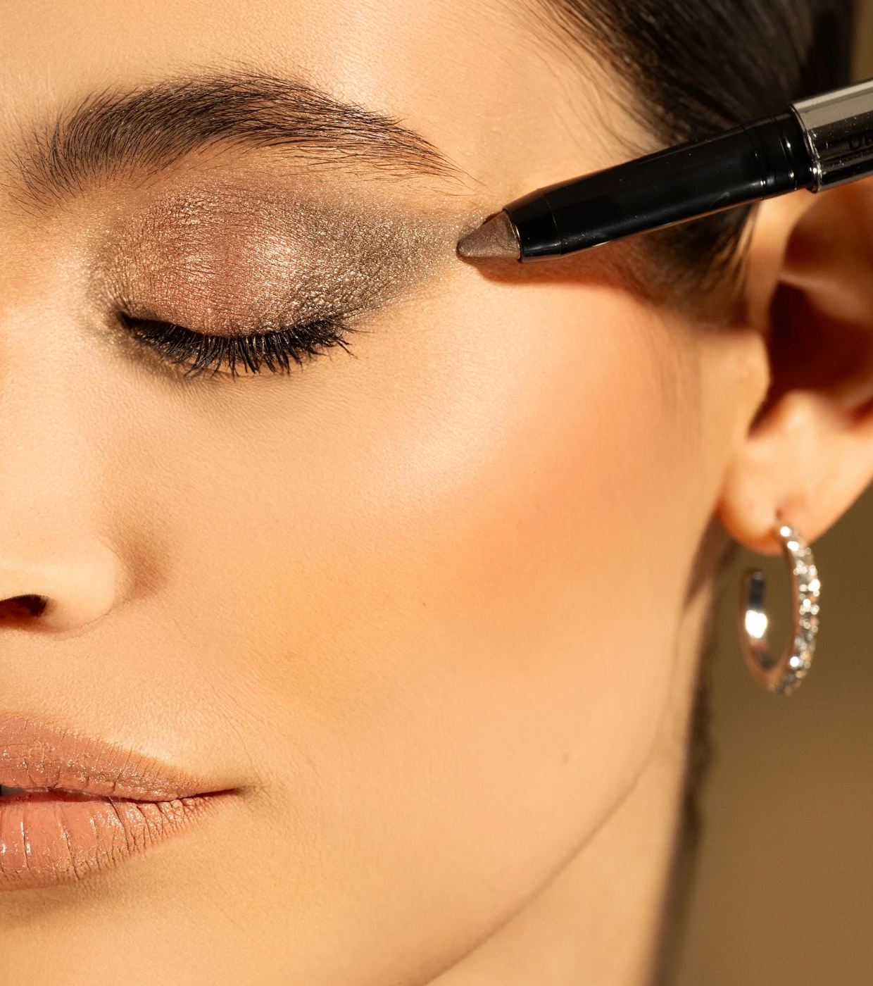 Esta sombra em bastão multifuncional oferece uma textura sofisticada que se funde suavemente à pálpebra com um toque sedoso e, uma vez esfumada, proporciona um acabamento de longa duração que permanece intacto o dia todo.