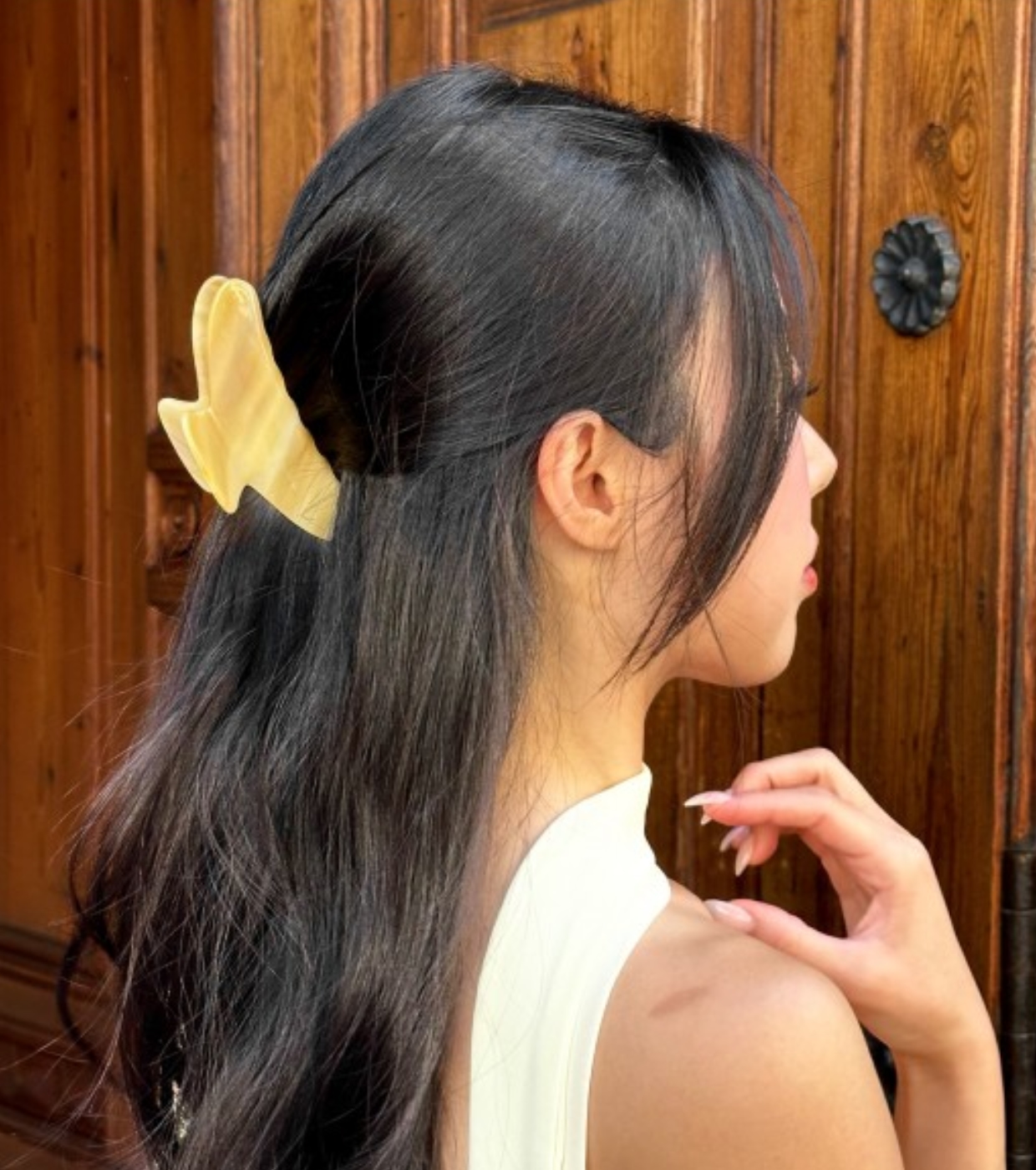 Este Hair Clip da Miin é uma presilha durável e versátil, projetada para criar penteados rápidos e fáceis para todos os tipos de cabelo.