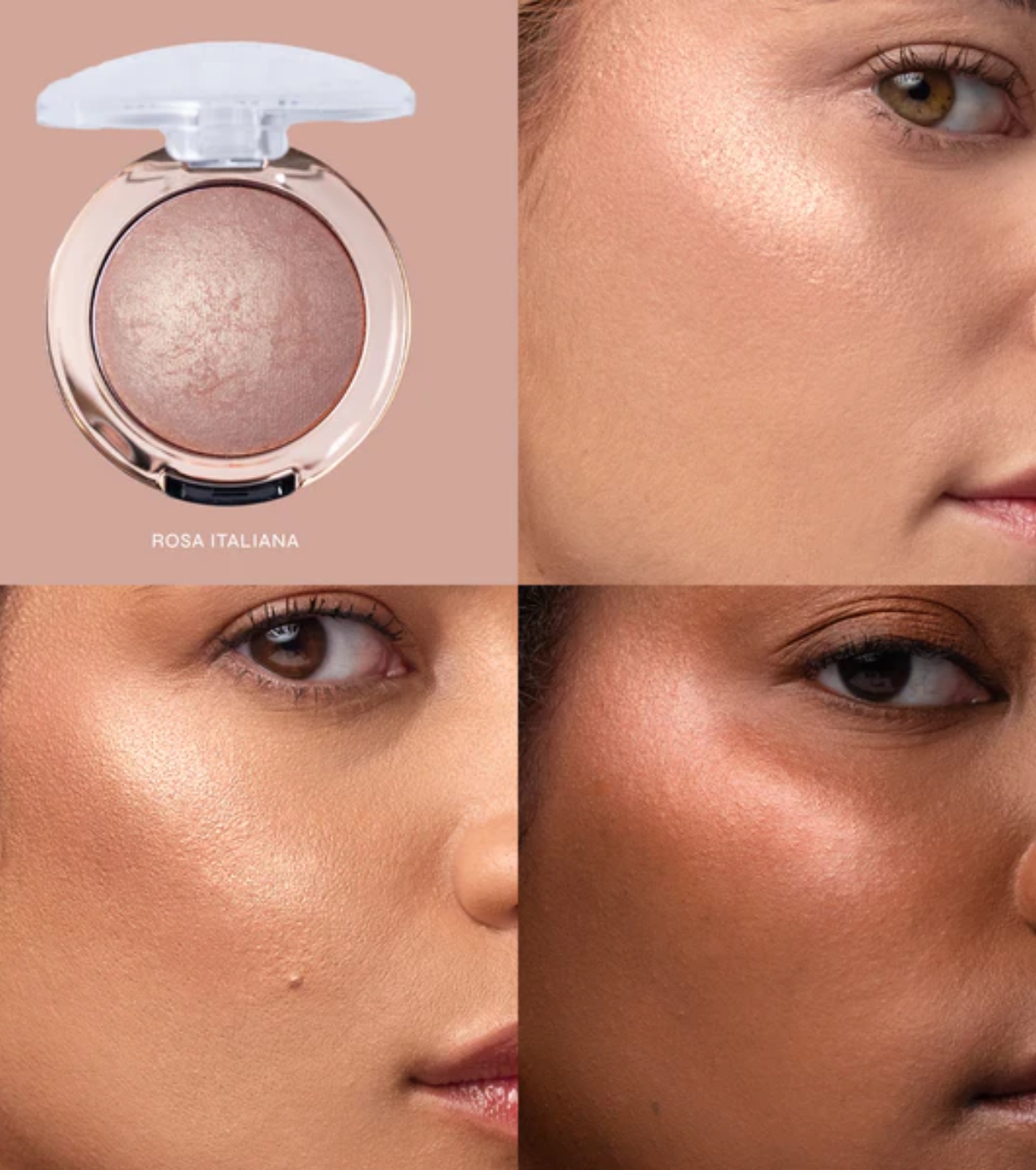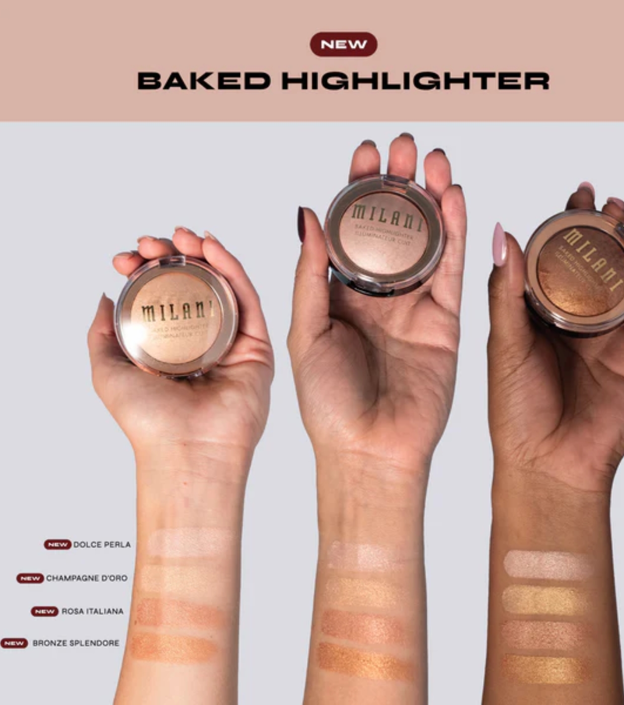O Baked Highlighter da Milani permite obter um brilho elegante e realista, sem partículas grosseiras ou efeito artificial.