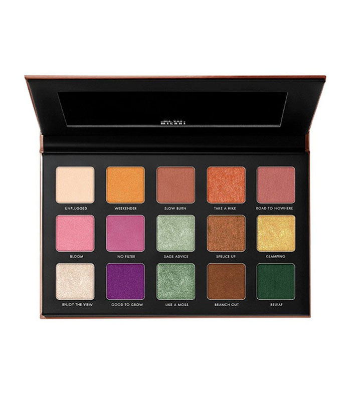 Esta paleta contém 15 sombras em uma mistura de tons com acabamentos fosco e cintilante.