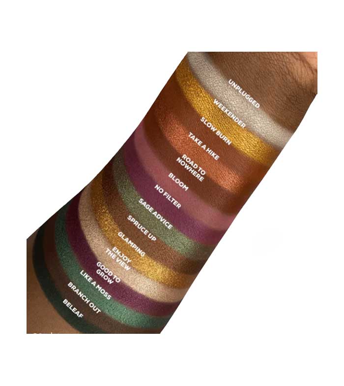 Unplugged, Slow Burn, Branch Out, Road to Nowhere, Bloom,Beleaf: Mica, Dimethicone,Aluminum Starch Octenylsuccinate, Dimethicone /Vinyl DimethiconeCrosspolymer, Octyldodecyl Stearoyl Stearate, Bis-DiglycerylPolyacyladipate-2, Pentaerythrityl Tetraisostearate, Silica, Phenoxyethanol,Ethylhexylglycerin, Tocopherol. May Contain: Titanium Dioxide (CI77891), Iron Oxides (CI 77491, CI 77492, CI 77499), Yellow 5 Lake (CI 19140),Red 40 Lake (CI 16035), Blue 1 Lake (CI 42090), Carmine (CI 75470), ManganeseViolet (CI 77742).