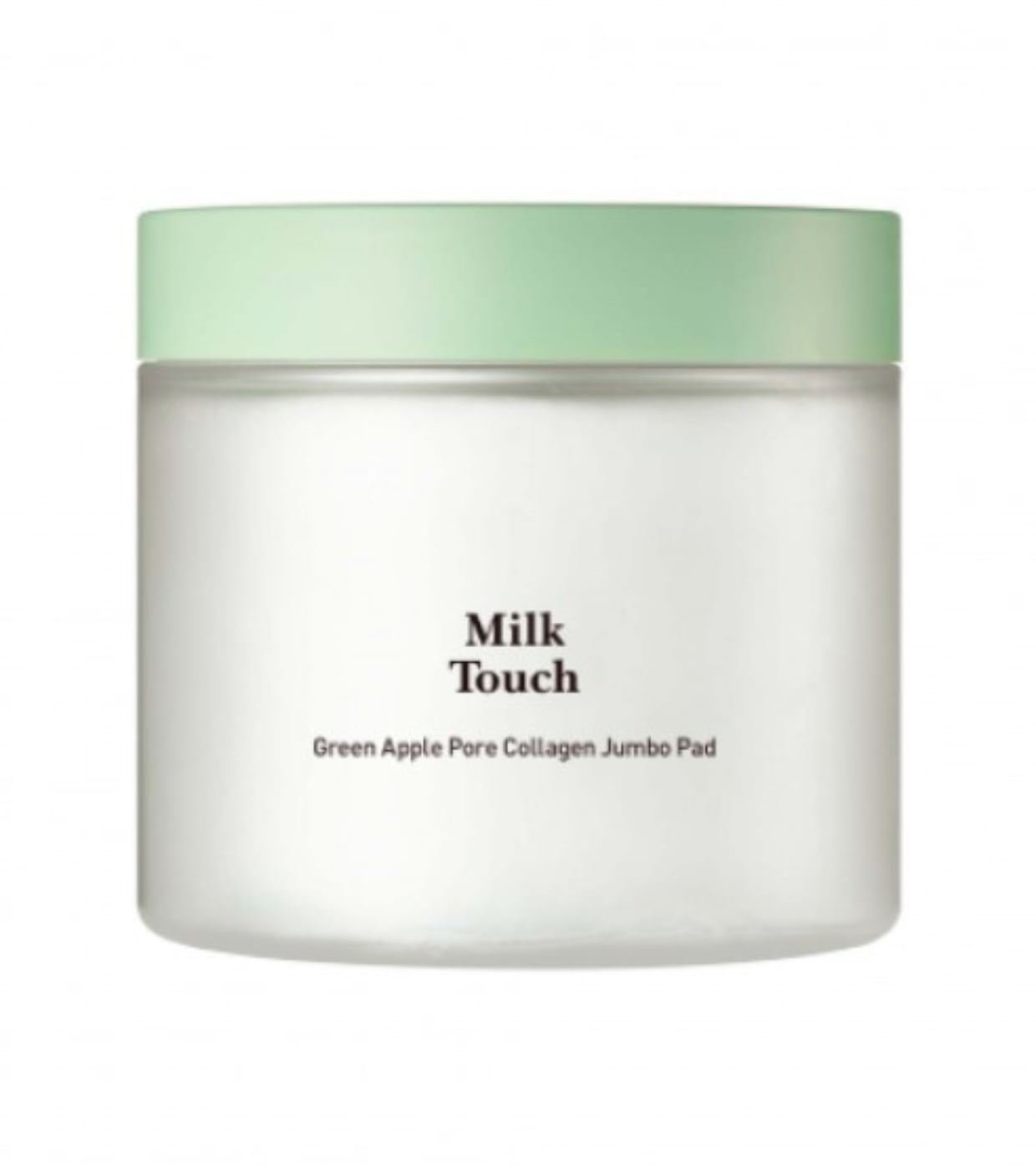 As almofadas de algodão Green Apple Pore Collagen Pads da Milktouch contêm ingredientes com propriedades esfoliantes para uma pele visivelmente mais lisa e com poros reduzidos.