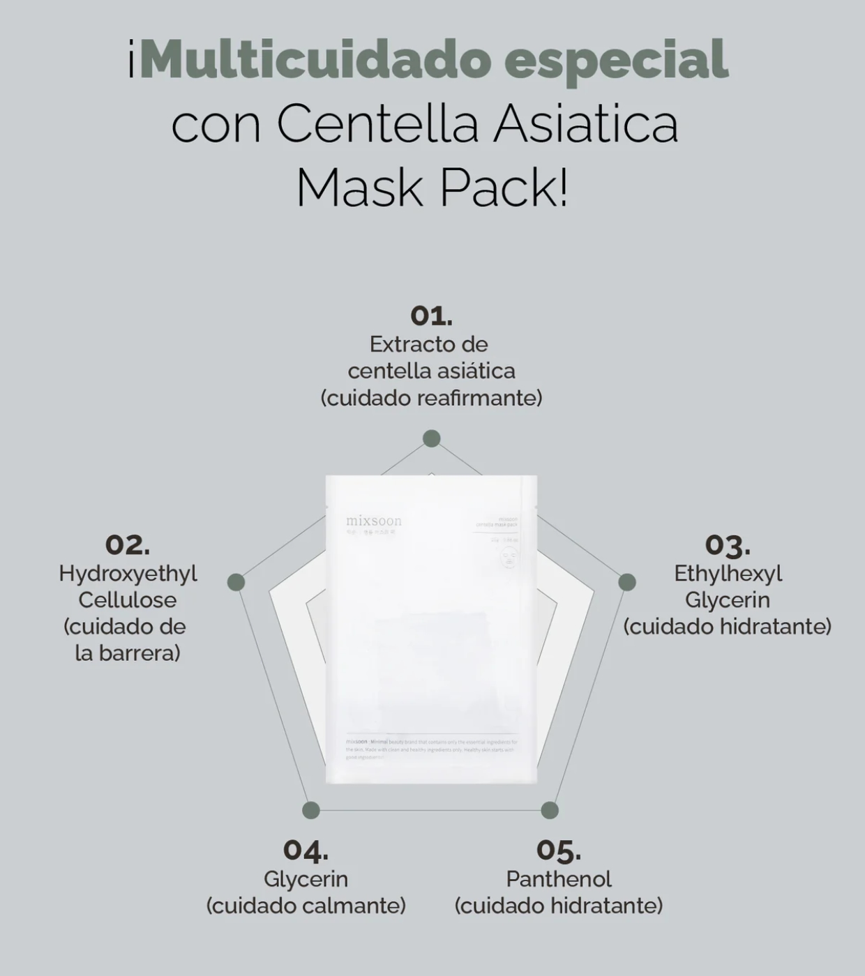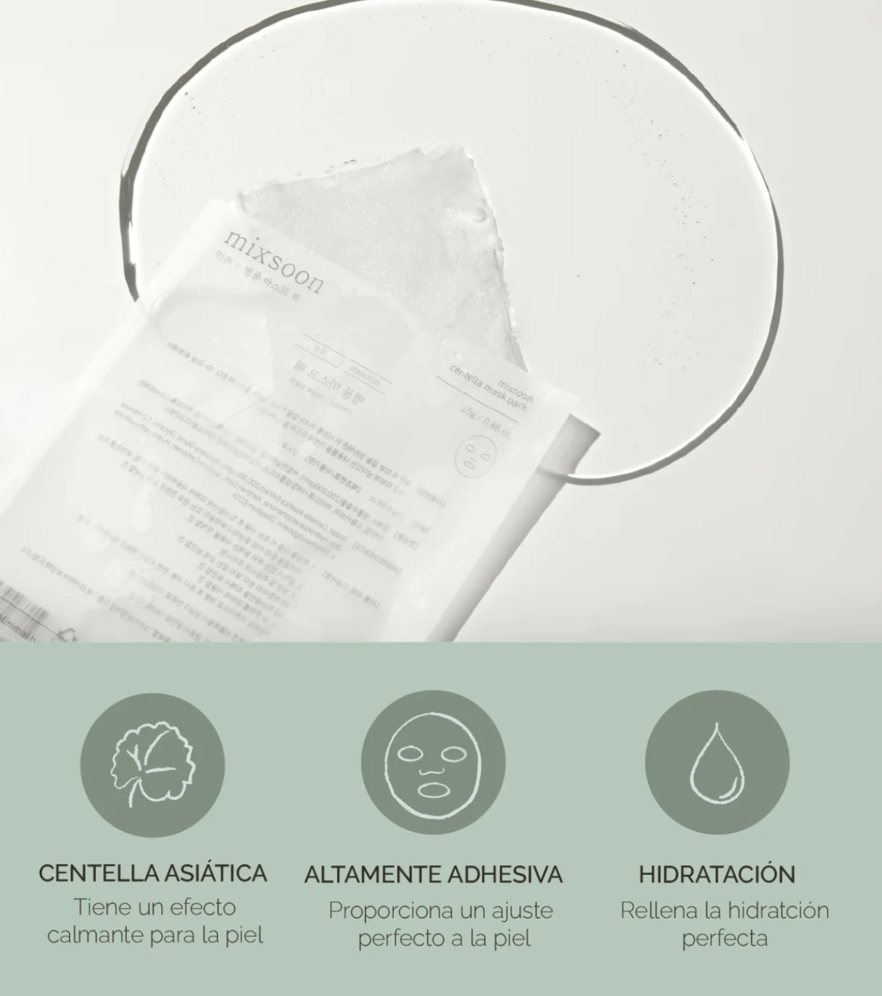 Restauração intensiva e alívio para sua pele com a Centella Mask da Mixsoon , formulada com 200.000 ppm de extrato de Centella Asiatica cultivado na Ilha de Jeju, Coreia.
