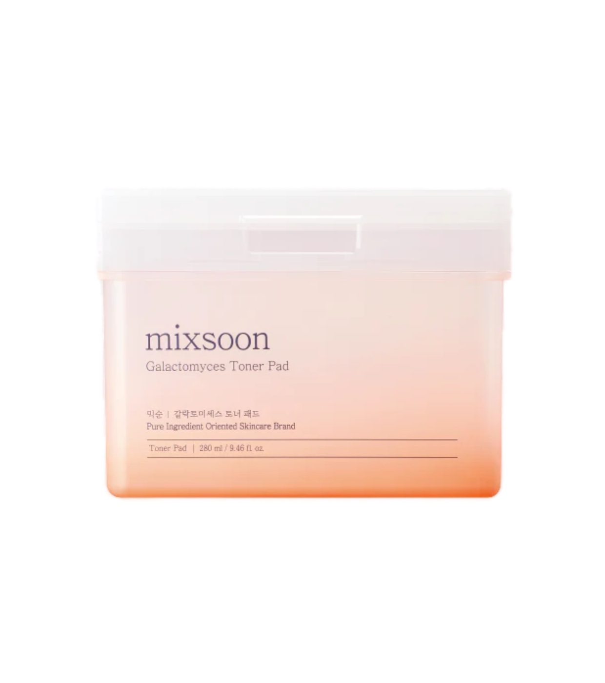 Mixsoon Galactomyces Toner Pad contém almofadas de tônico infundidas com extrato fermentado de galactomyces, rico em nutrientes para revitalizar a pele cansada, bem como niacinamida para um efeito iluminador.