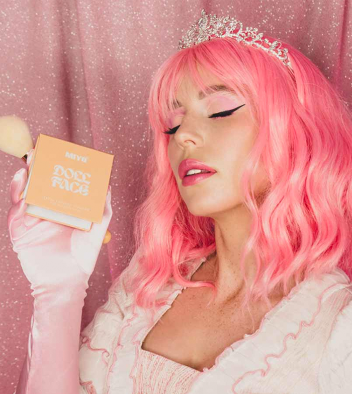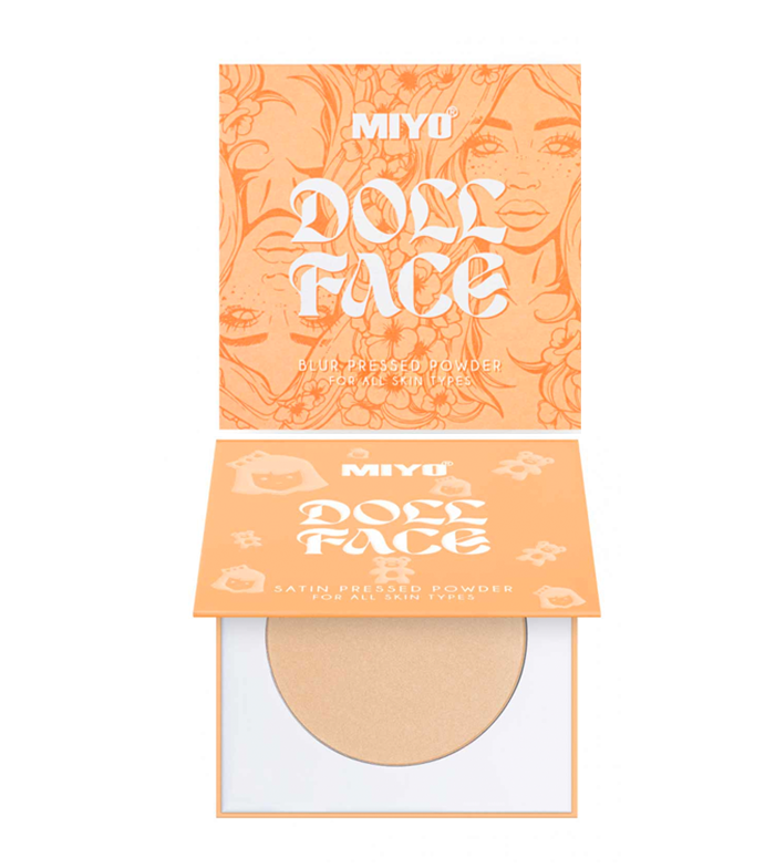 Nova fórmula aprimorada do pó para selar a maquiagem Doll Face da Miyo .