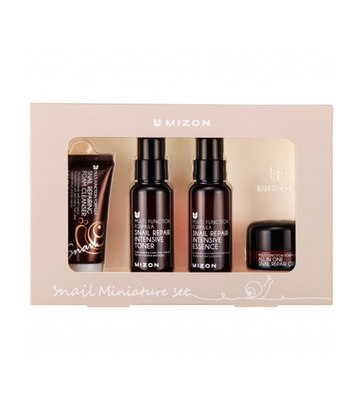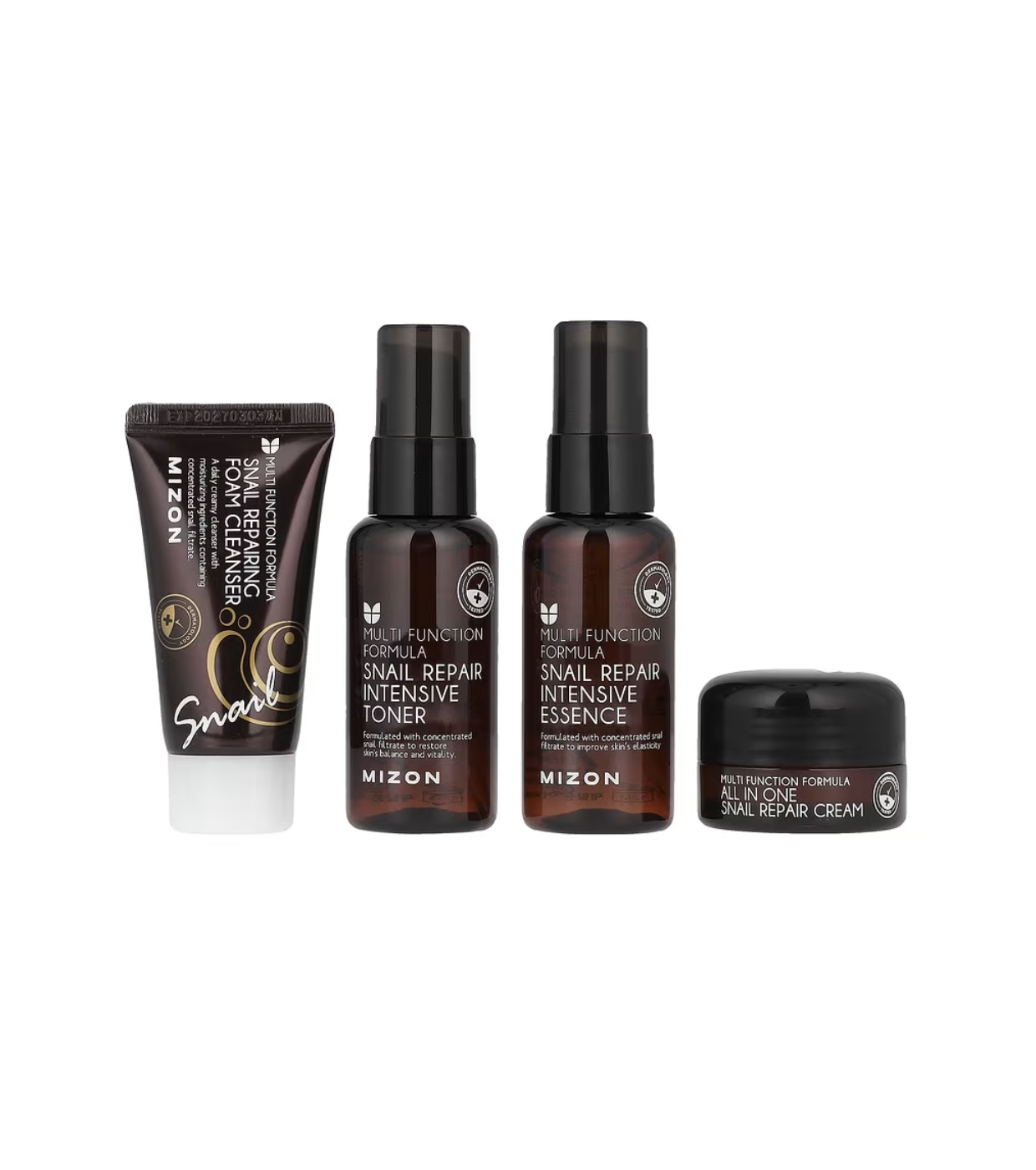 - 1 x Snail Repair Intensive Toner (50 ml): Tônico hidratante e equilibrador que prepara a pele para as etapas seguintes.