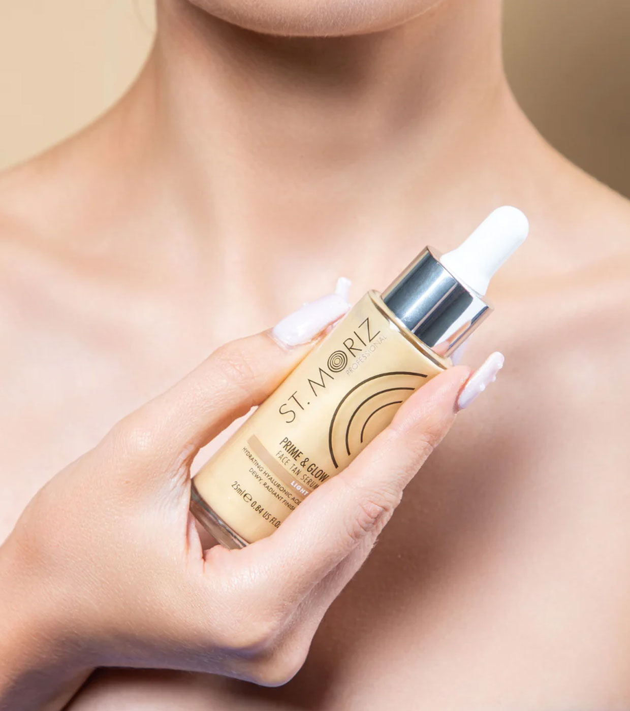 O Sérum Facial Autobronzeador Prime & Glow pode ser usado diariamente na pele limpa e seca do rosto para criar um bronzeado sutil e gradual ou como pré-base de maquiagem para um acabamento radiante.