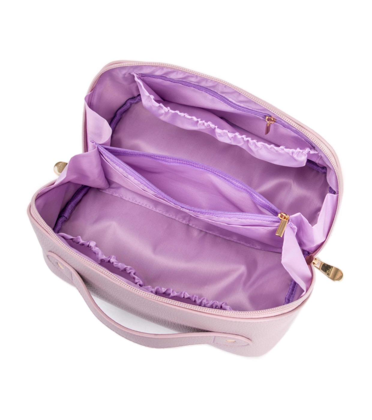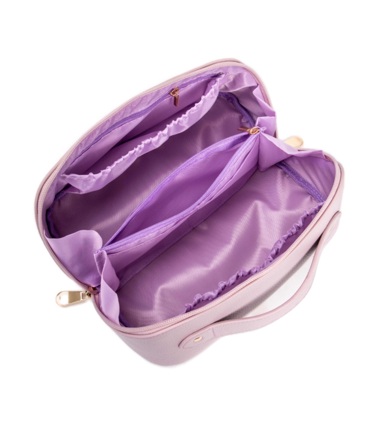 Organize seus produtos e acessórios de beleza com estilo e eficiência com esta bolsa de higiene na sofisticada cor lavanda, o acessório perfeito para manter seus itens essenciais à mão e bem cuidados em cada viagem.