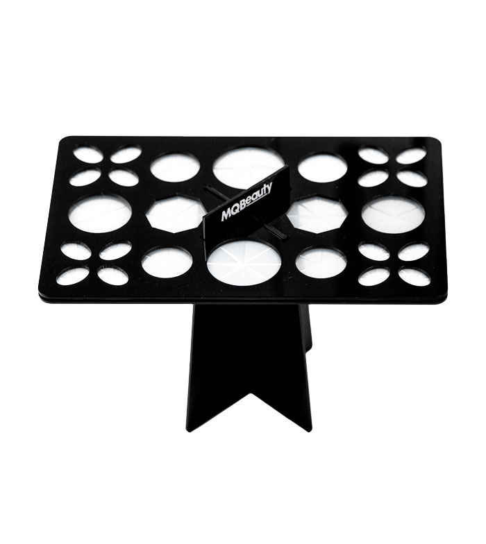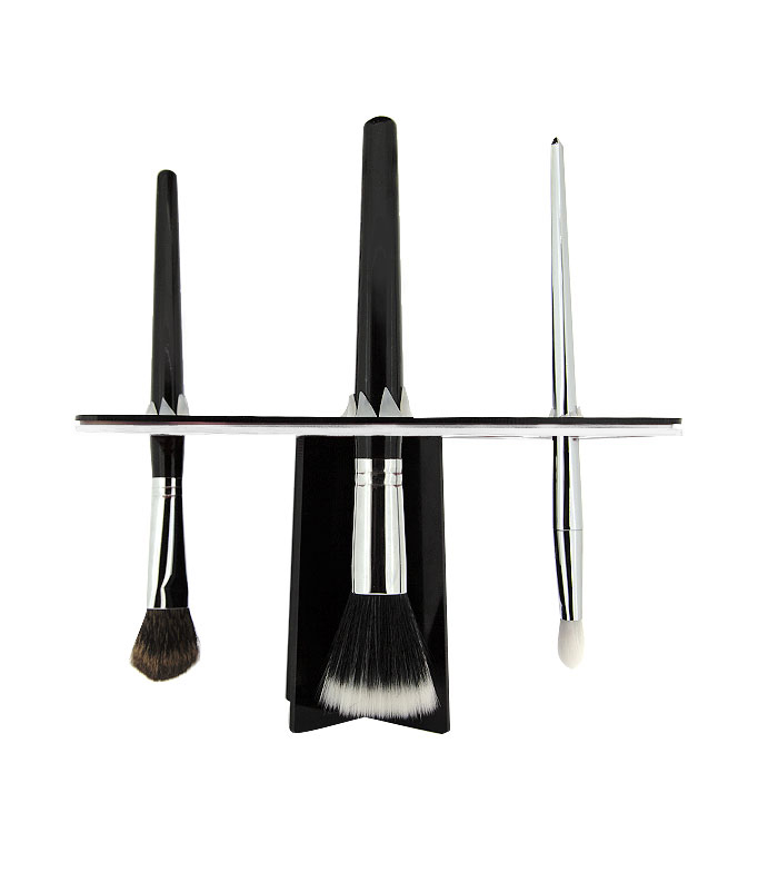 Possui um sistema de ganchos de silicone de segurança em cada orifício para manter seus pincéis bem presos. Com um elegante acabamento em preto brilhante, use-o para manter os pincéis à mão e bem organizados em sua vaidade.