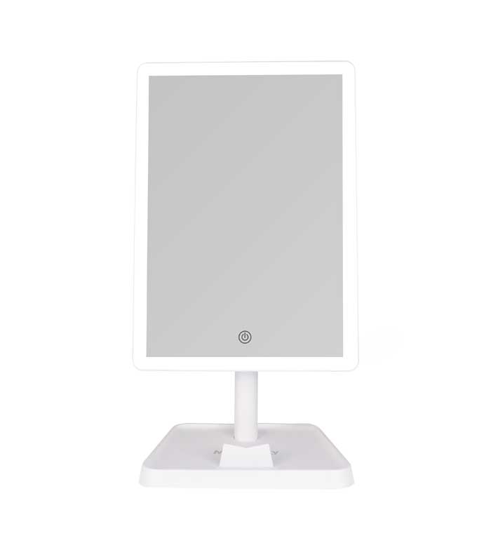 É um espelho de maquiagem de alta definição e grande superfície, com iluminação LED de longa duração composta por lâmpadas economizadoras de energia que não requerem troca.