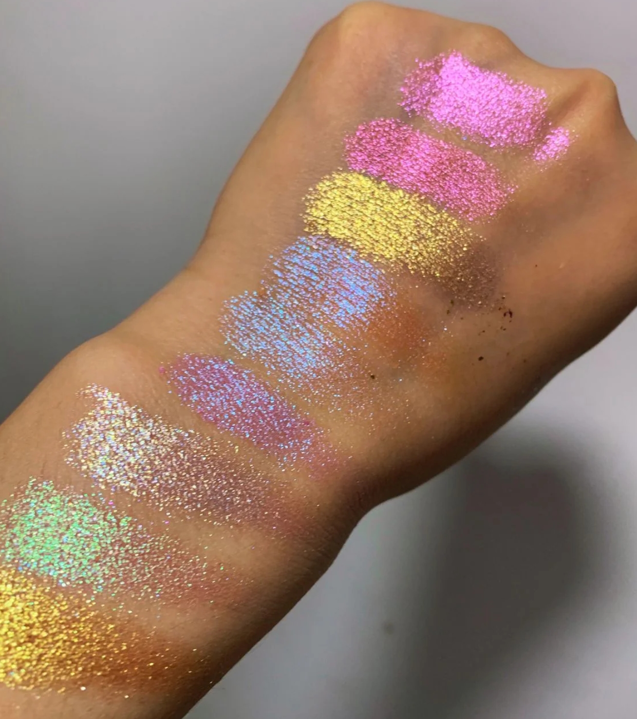 Ideais para quem busca um brilho sofisticado e original, essas sombras veganas e livres de crueldade animal são perfeitas para looks diurnos ou noturnos, adicionando um toque de fantasia e luminosidade a qualquer maquiagem.