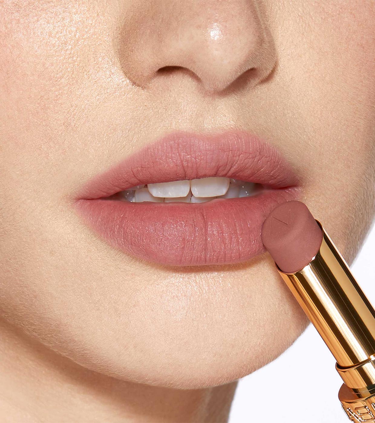 A textura, que se adapta aos lábios com conforto e aderência, desfoca a superfície dos lábios para criar uma aparência suave e aveludada.