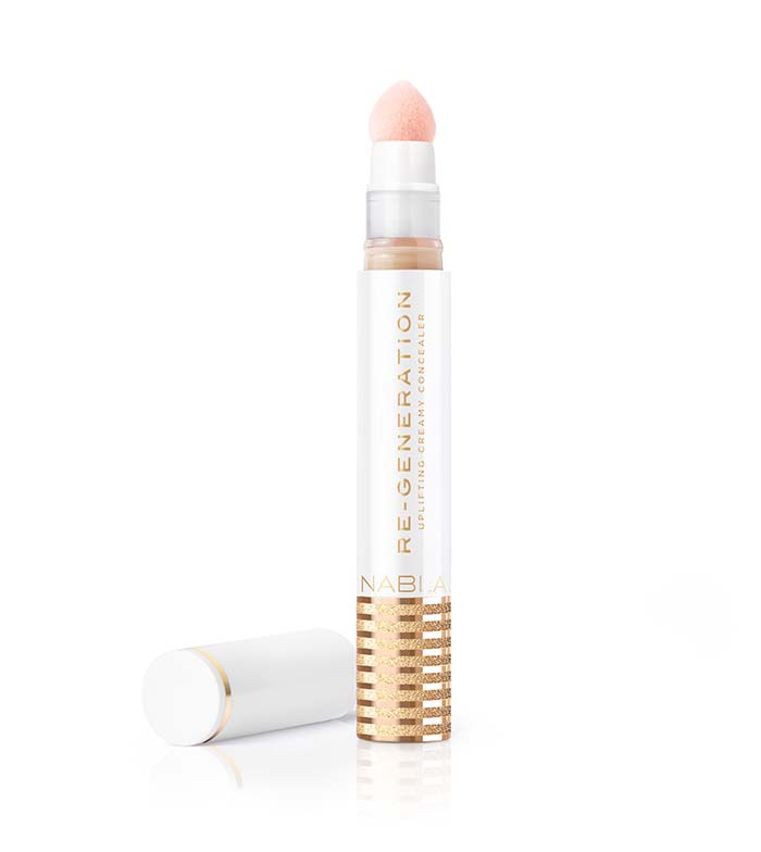 Nabla Re-Generation Liquid Concealer corrige o tom das olheiras unificando a cor da pele, enquanto reduz significativamente o aparecimento de linhas finas na área para um efeito regenerador.