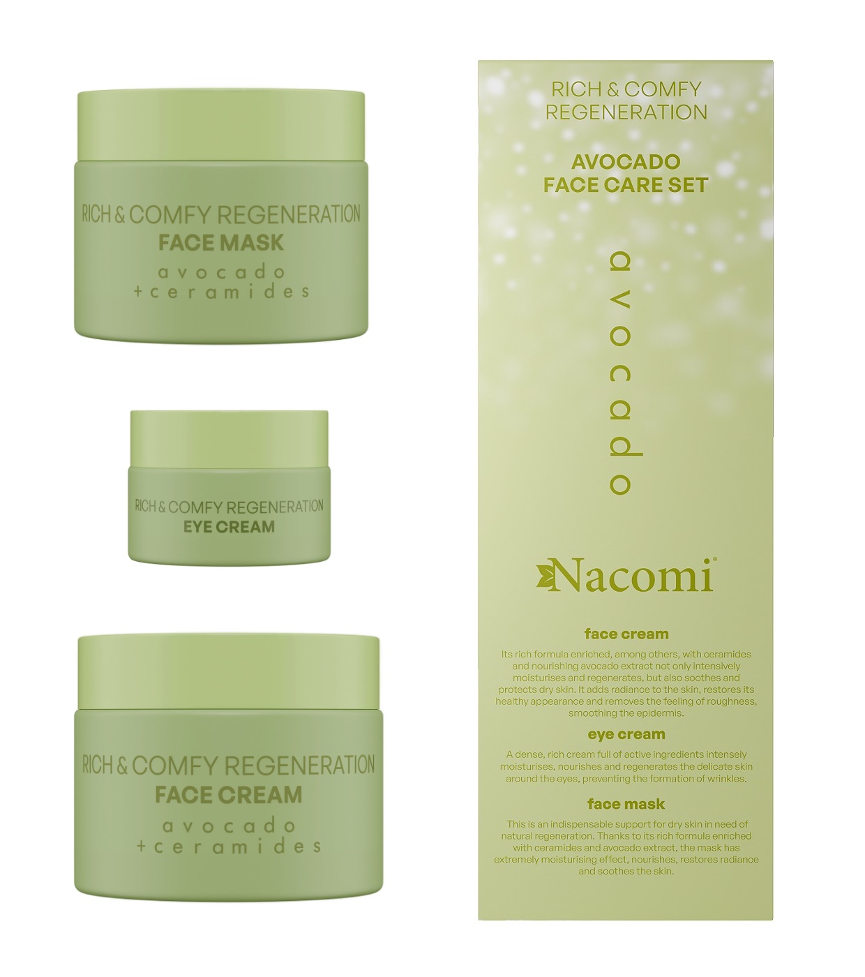 Conjunto de presentes para cuidados faciais Avocado Rich and Comfy Regeneration da Nacomi.