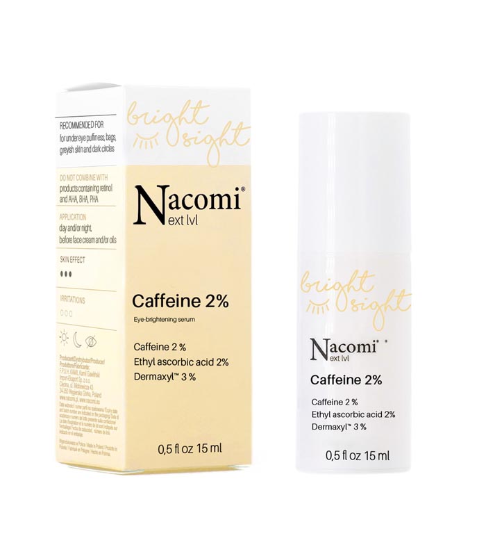 A cafeína, juntamente com os restantes ingredientes, uniformiza o tom da pele, reduzindo e prevenindo as olheiras.