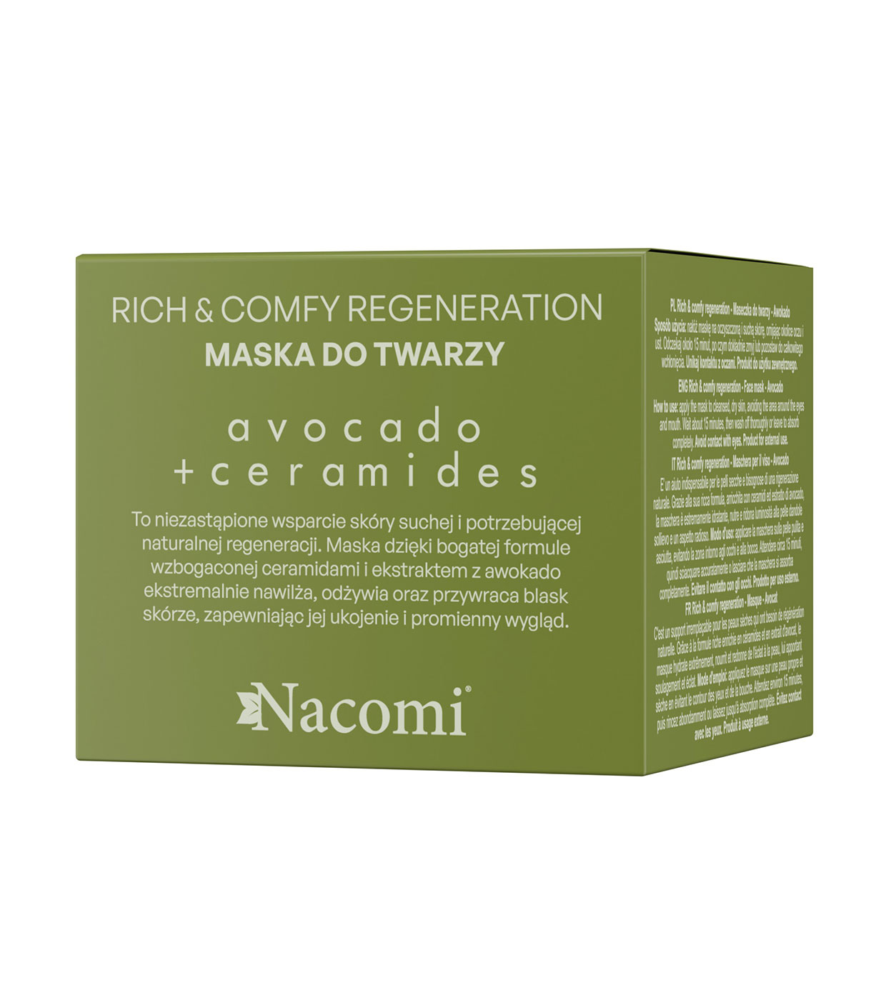 Mergulhe em um oásis de hidratação e regeneração com a Máscara Facial de Regeneração Rica e Confortável de Abacate + Ceramidas .