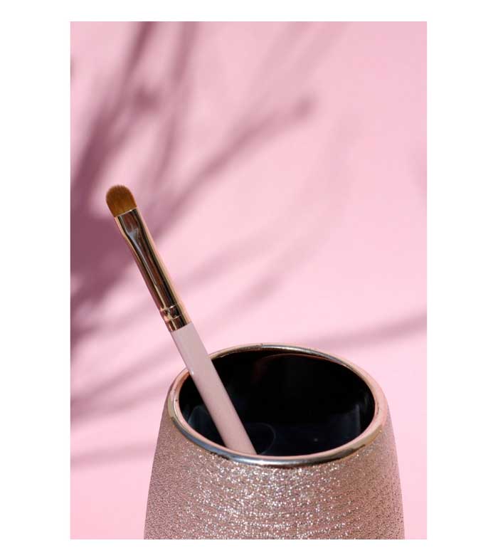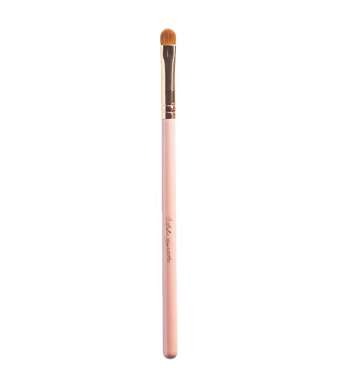 LaiaPequeño, suave y firme, aplica muy bien la sombra. Su contorno finisimo puede ayudar a difuminar lápiz y sombras en la linea de pestañas. Funciona genial con sombras en crema.
